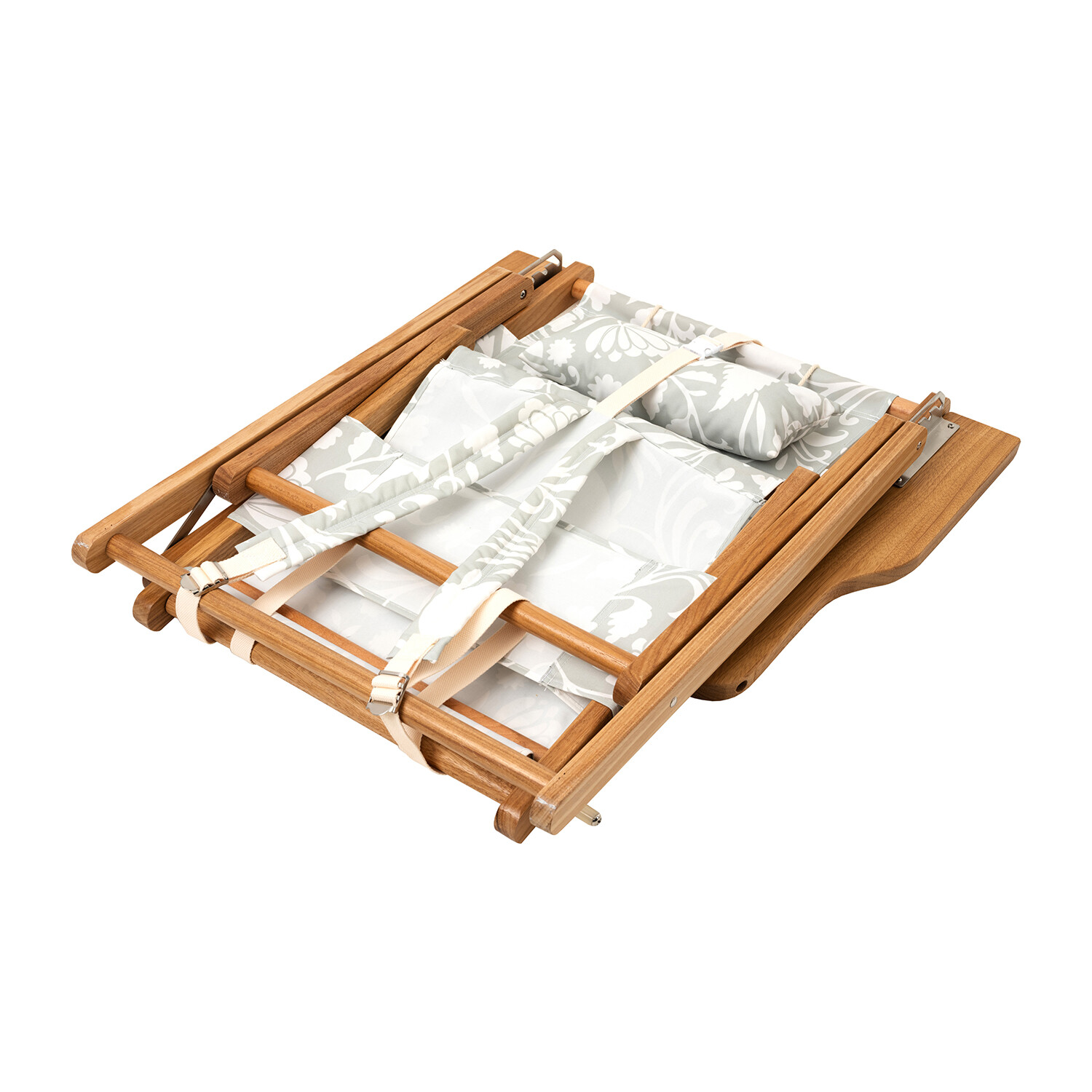 Ideal for the beach, lake, or deck, this chair features a sturdy teak frame that's resistant to moisture, alongside a sling crafted from UV- and water-resistant fabric, adorned with a unique floral print only available here. With the ability to adjust to three positions for optimal comfort, the chair is outfitted with a spacious back zip pocket and can be conveniently folded into a backpack, allowing for easy portability.