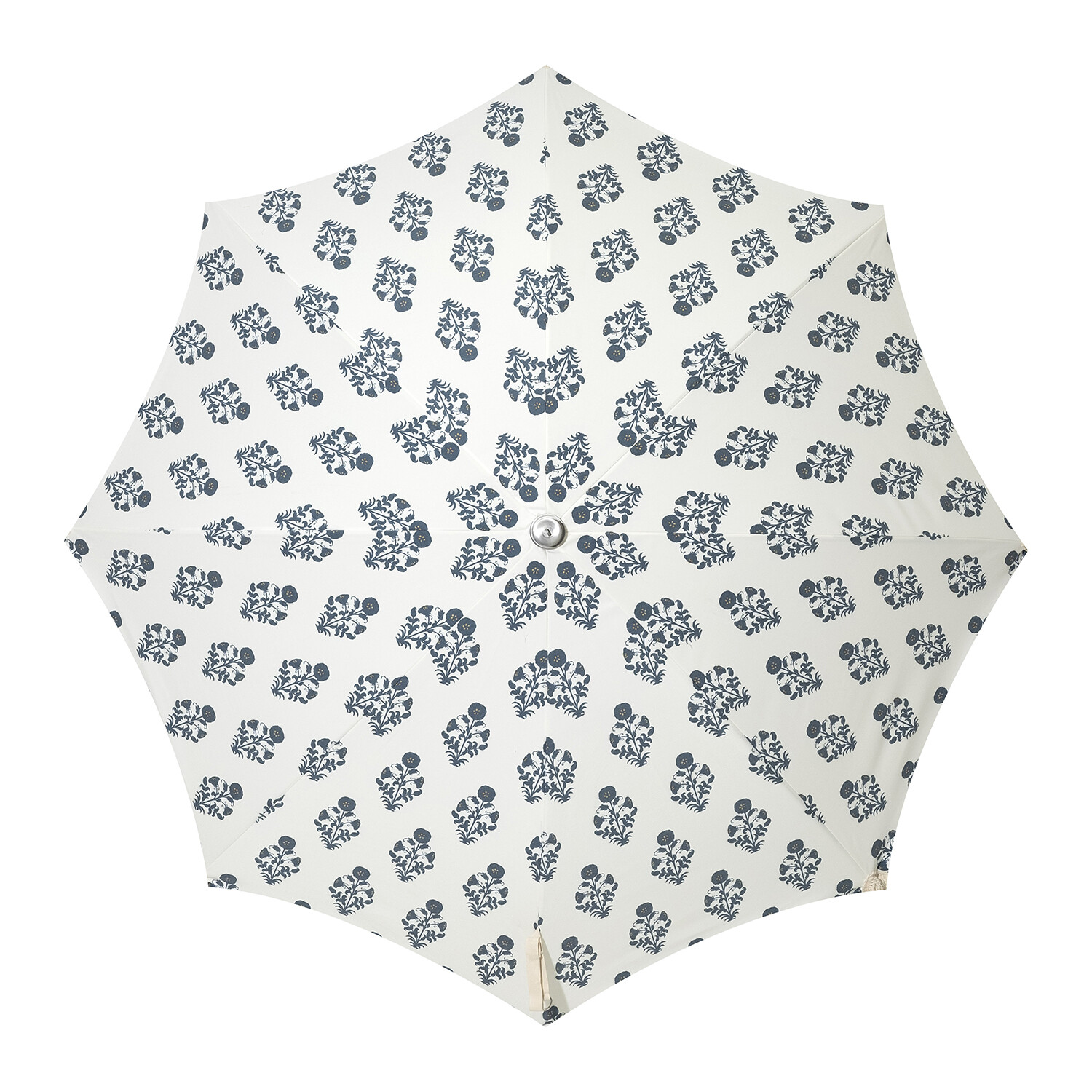 Ideal for the beach, lake, or deck, this umbrella features a coated canvas canopy that offers convenient UV, mold, and water resistance. Its collapsible pole allows for tilting to block the sun from various angles, and the screw-tip bottom aids in securing it firmly into the sand (providing 6 feet of shade when open). A playful cotton fringe adds a touch of whimsy to the design, while a coordinating carrying bag ensures effortless transportation.