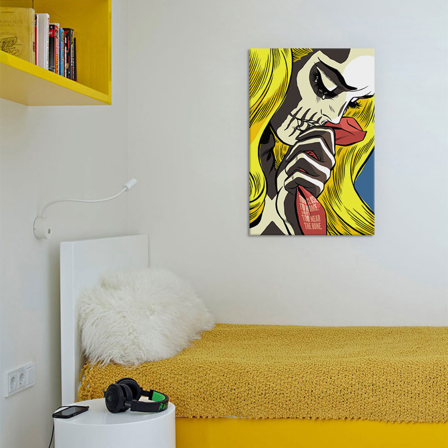 Inspired by figures from classic pop culture, this incredible pop art canvas print from Billy Butcher is reminiscent of comic books and retro art styles. With vivid colors and recognizable figures, hanging one in your home will invoke nostalgia and an edgy aesthetic that will make your space just a little bit punk rock.