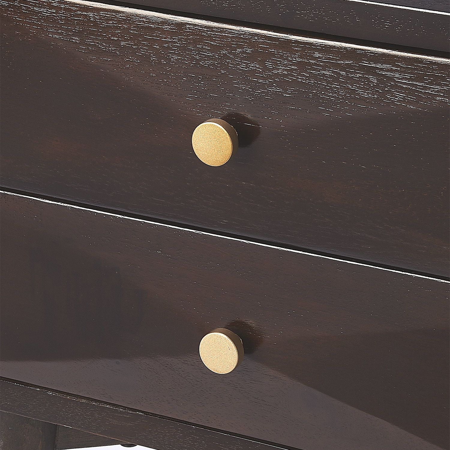 The Gisla Coffee Nightstand is crafted in Okume wood and Okume veneers to ensure durability, as well as provide the beautiful look of rich veneer graining. The multi-dimensional design of the drawer fronts on this drawer chest create a movement that takes your eyes on a journey, while the interiors offer extensive space for all your storage needs. The beauty of the brass finished hardware lends an edge of elegant simplicity to the overall style. The wood tapered legs and their brass finish ferrules give this piece undeniable attention to details.
