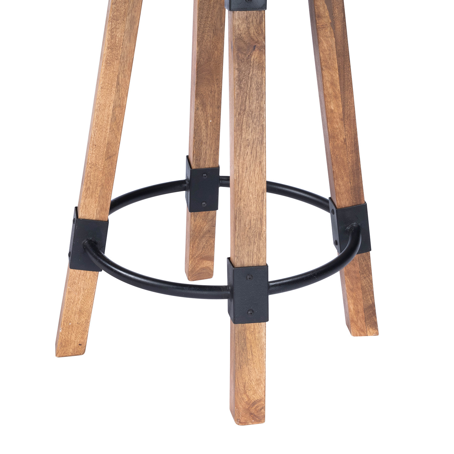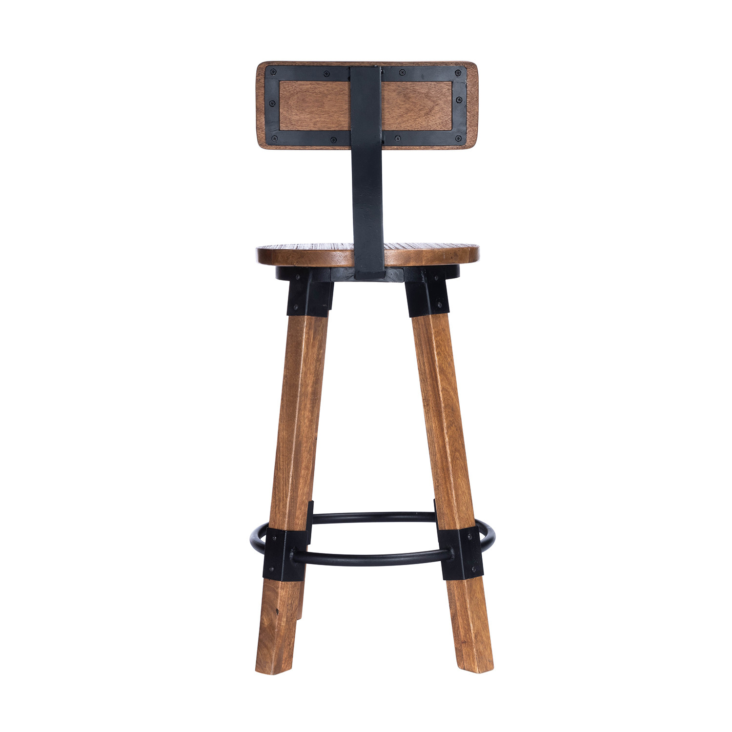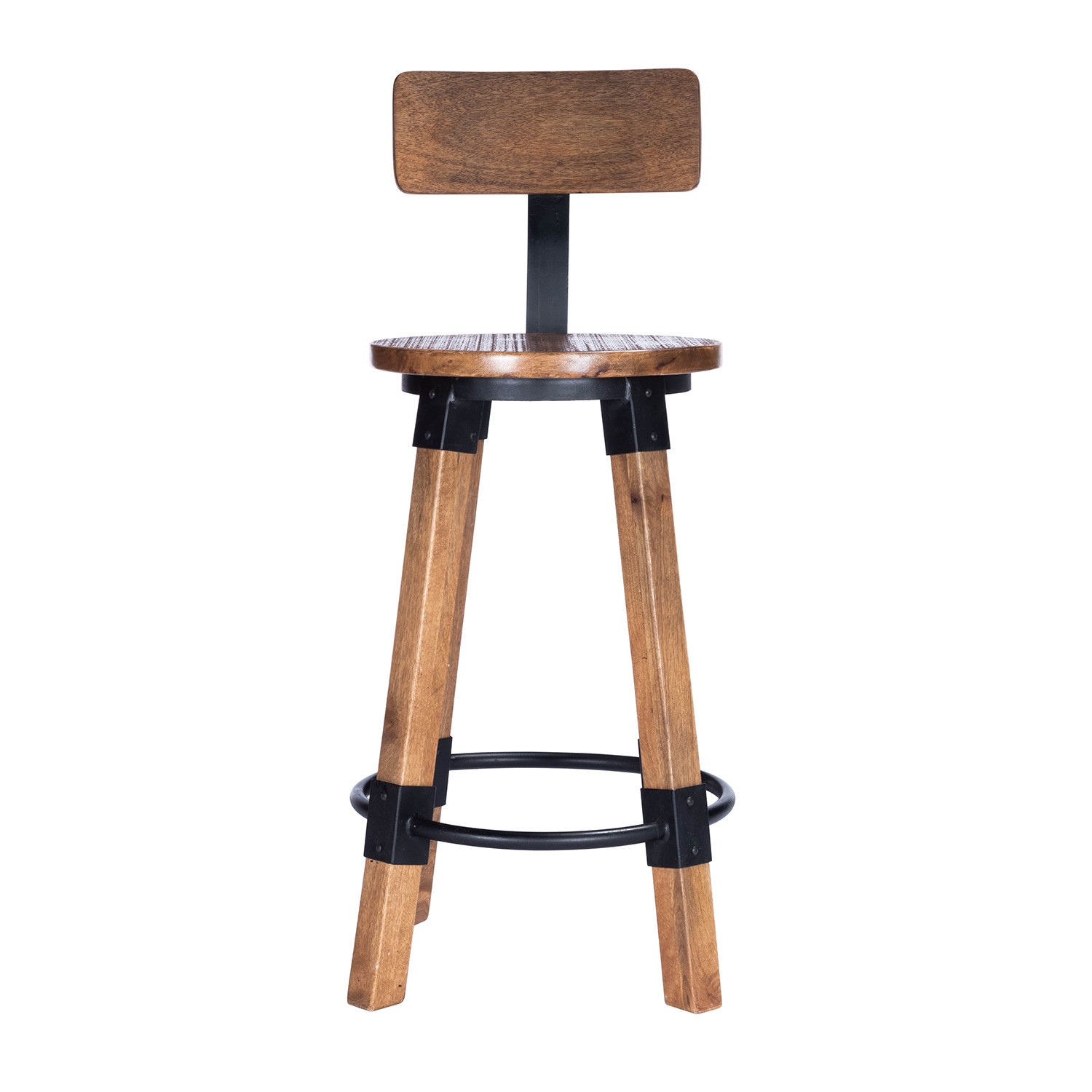 Add style to your space with the Brownhelm Wood & Metal Counter Stool. The textured appearance compliments the mango wood and black iron accents. The built-in footrest and backrest offer an extra comfort to the sturdy design.