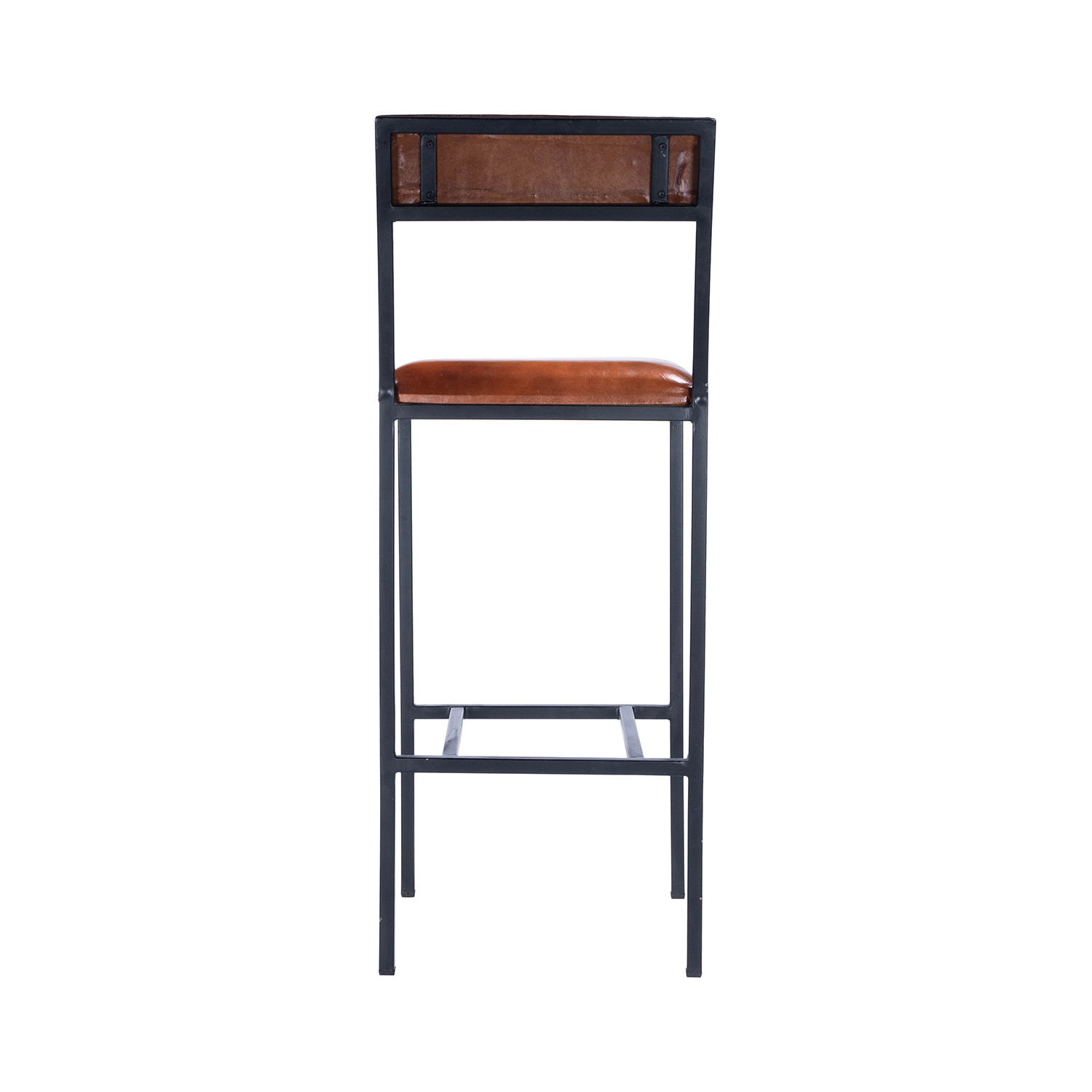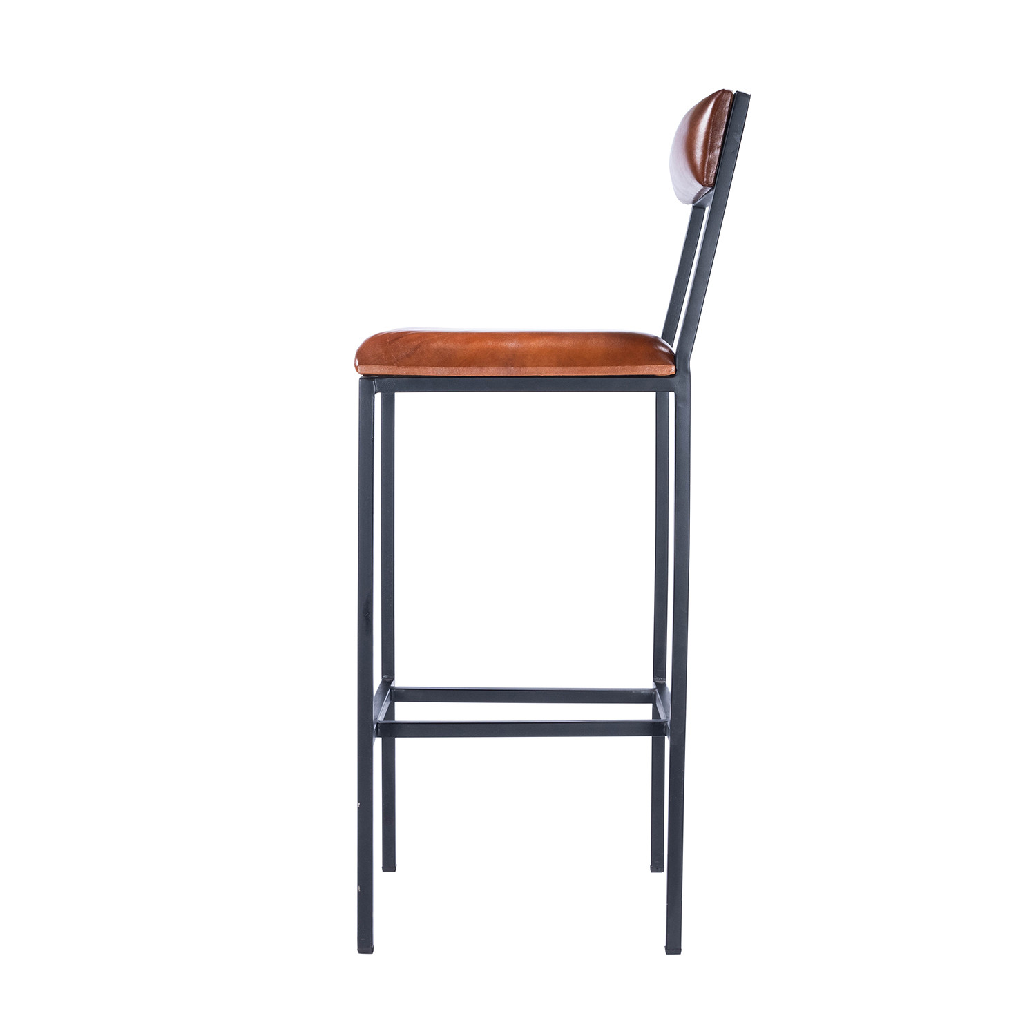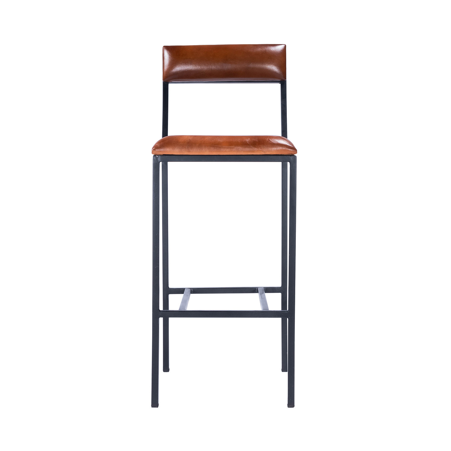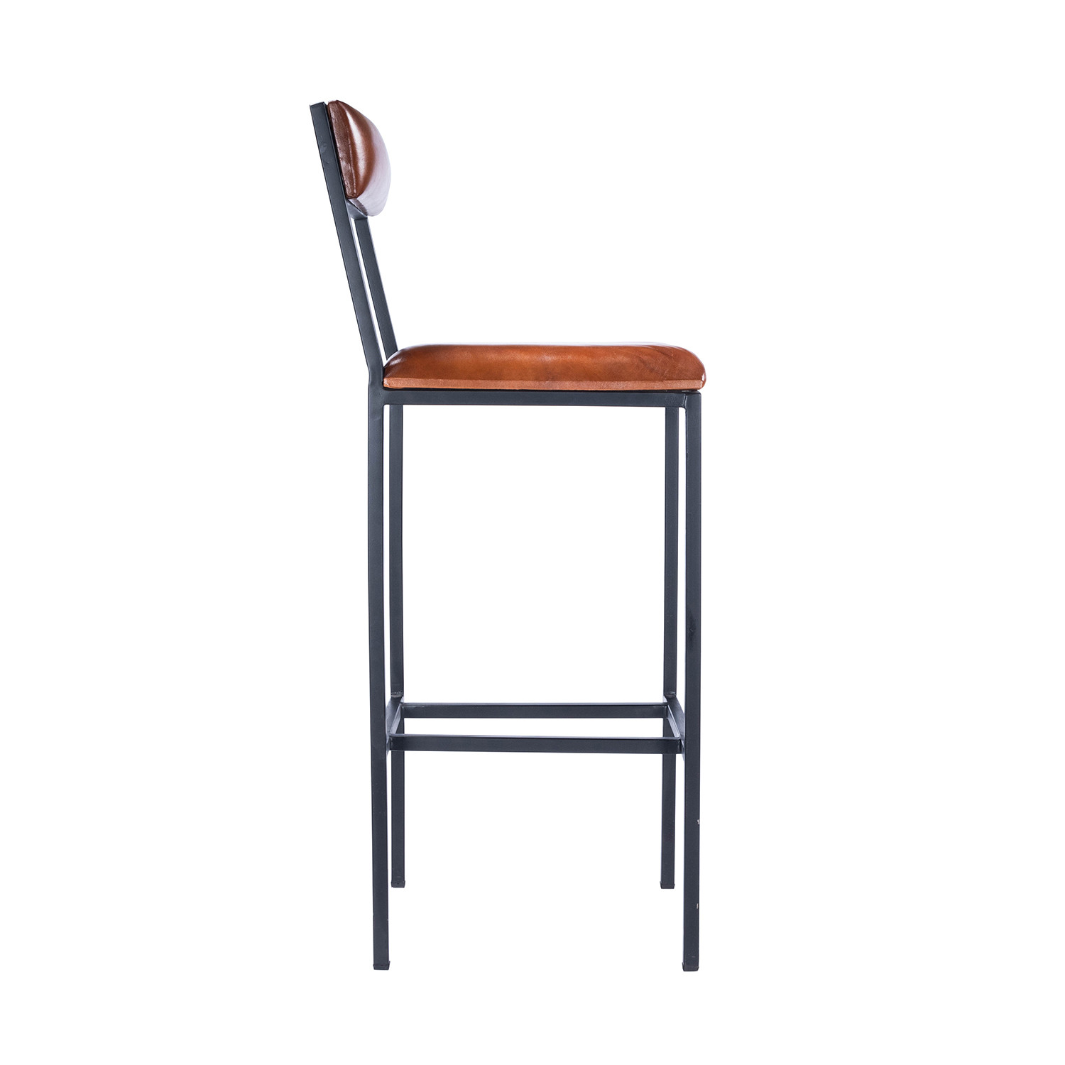 Add style to your space with Penfield Leather and Metal Bar Stool with a padded seat and backrest! Crafted from leather and iron, this bar stool was designed with a built-in footrest and structural stretchers for added stability and comfort.