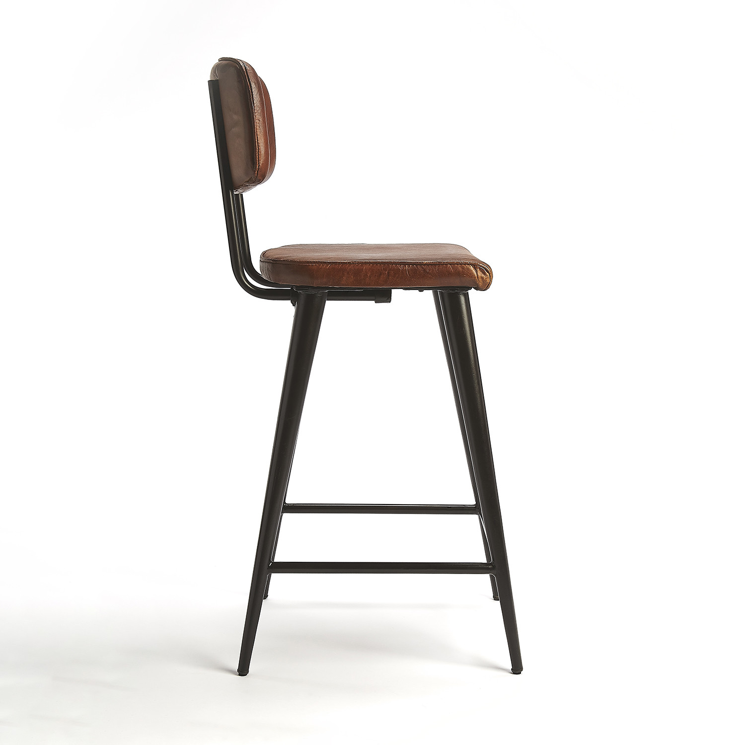 Reminiscent of retro leathers, the Valejo Counter Stool brings a rustic glam to your kitchen, bar or pub ensemble. Comfortable seating with its supple leather adds a touch of retro style to your home décor. Just the right element to refresh and impress with the appeal of burnished metal finish on a taper leg. It compliments just about any decor from contemporary to farmhouse.