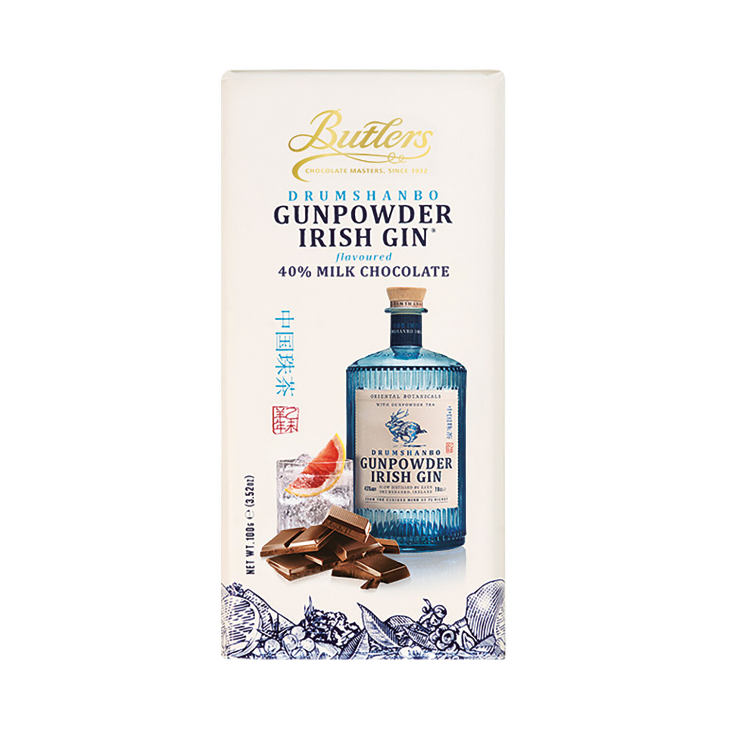 Drumshanbo Gunpowder Irish Gin® is slow distilled by hand in medieval copper pot stills with oriental botanical and gunpowder tea. The Gunpowder Irish Gin Milk Chocolate Bar and Gunpowder Irish Gin Truffle Bar fuse this beloved spirit with Butlers Chocolates to create an unforgettable taste experience for you to discover and savor.