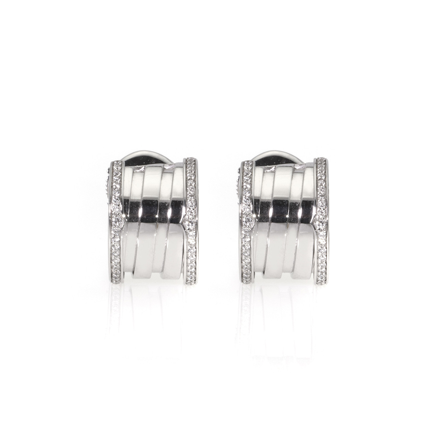 Bulgari B Zero 18k White Gold Diamond Huggie Earrings