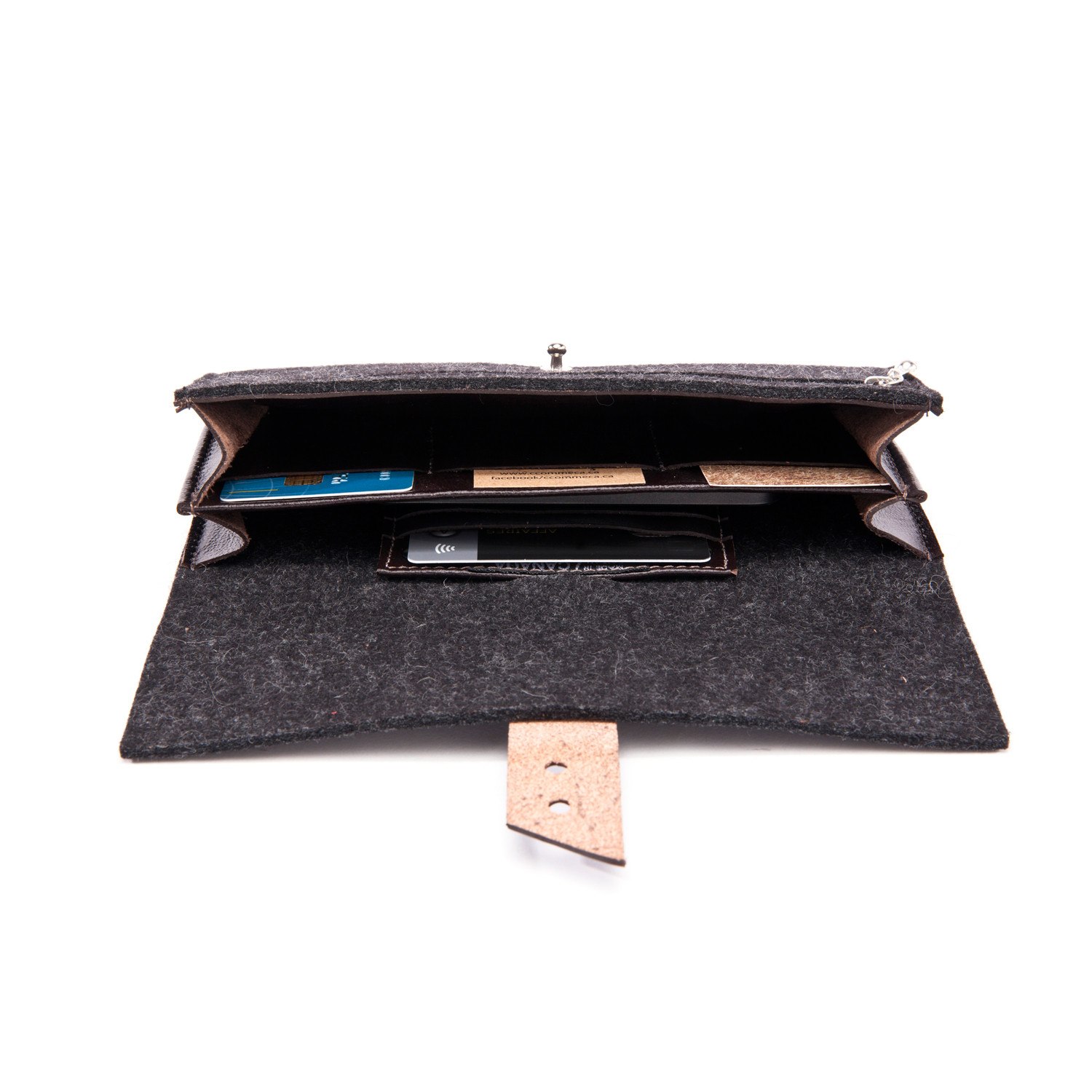 This gorgeous wallet has a lush, luxurious texture made of German wool felt, a warm and water resistant protectant that will keep your cards safe and your hands feeling soft. The Porte-Monnaie features leather straps with one-of-a-kind coloration and tanned with an organic natural process that designer Cindy Cantin learned in her extensive indigenous travels.