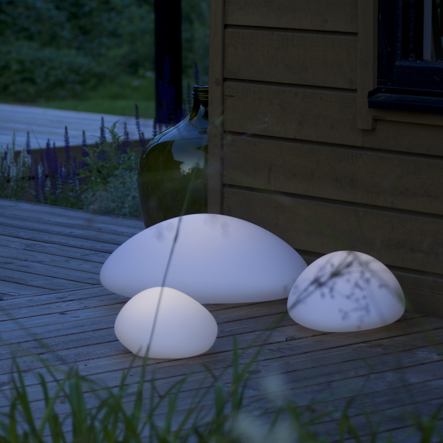 When dark clouds move into the sky or dusk begins to fall, we reach out to artificial light to light the path — not to blind us with glaring rays. This set of 3 polyethylene Mimo Lamps by Swedish label Calabaz are suitable for indoor and outdoor use. Remote controlled, dimmable, and with changeable colors, the Mimo Lamp can even float in water to bring a magical atmosphere to your pool and garden area. With a design reminiscent of polished stones, the low heat-emitting LED lamps remain cool enough to bring a fanciful, worry-free accent to children’s rooms. Welcome the night with no fear.