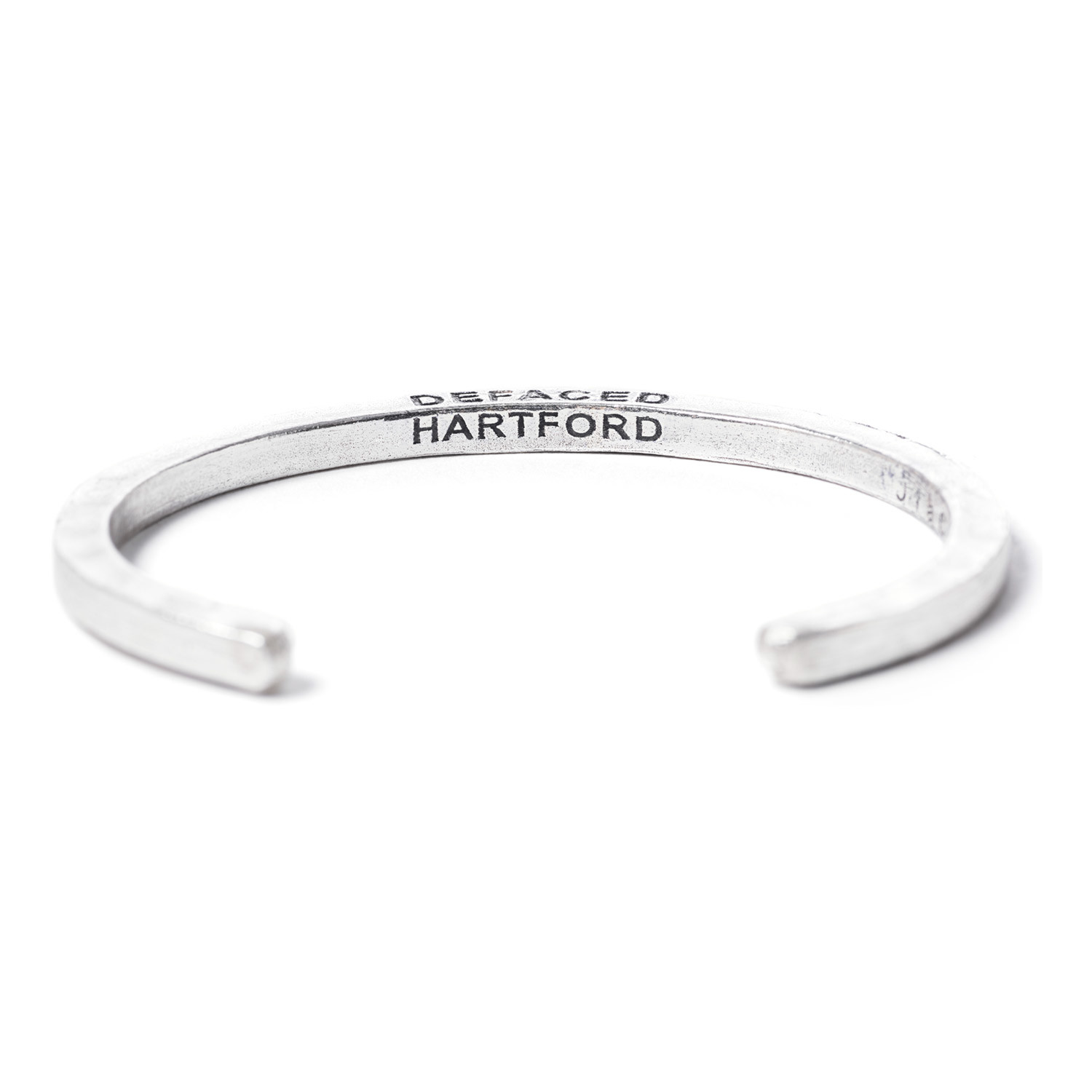 This Hartford Caliber Collection Cuff is exceptionally unique, made entirely from shell casings removed from the streets of Hartford. The oval shape of the cuff mimics the trigger cage of a gun and serves as a reminder of the destruction that is caused when it's pulled; the side of the cuff is hand-hammered to symbolize the hard work required, not only of the police, but of each individual in the fight to get illegal guns off the streets.