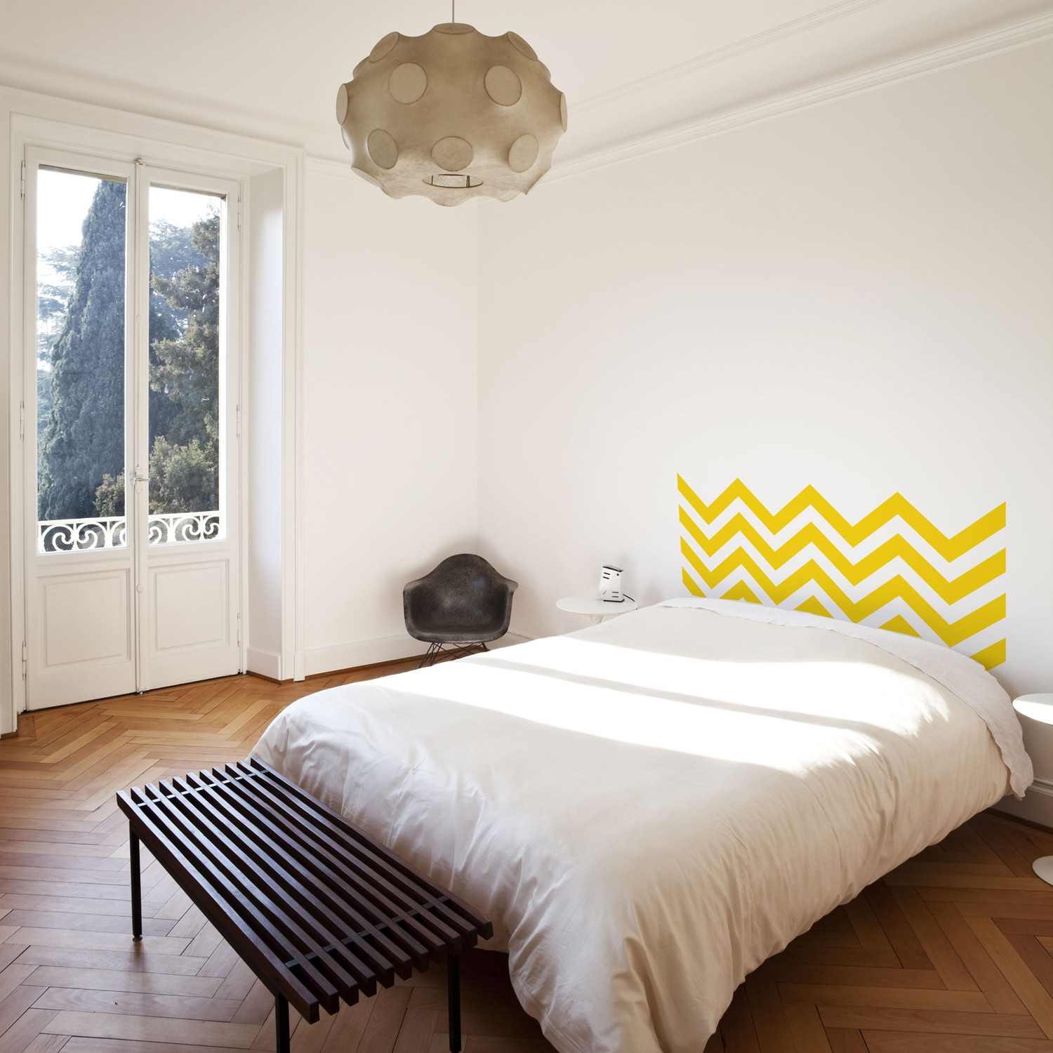 This bold chevron design is a playful interior element for those who prefer bed frames without headboards. This easy-to-install decal fits all beds 60" wide.