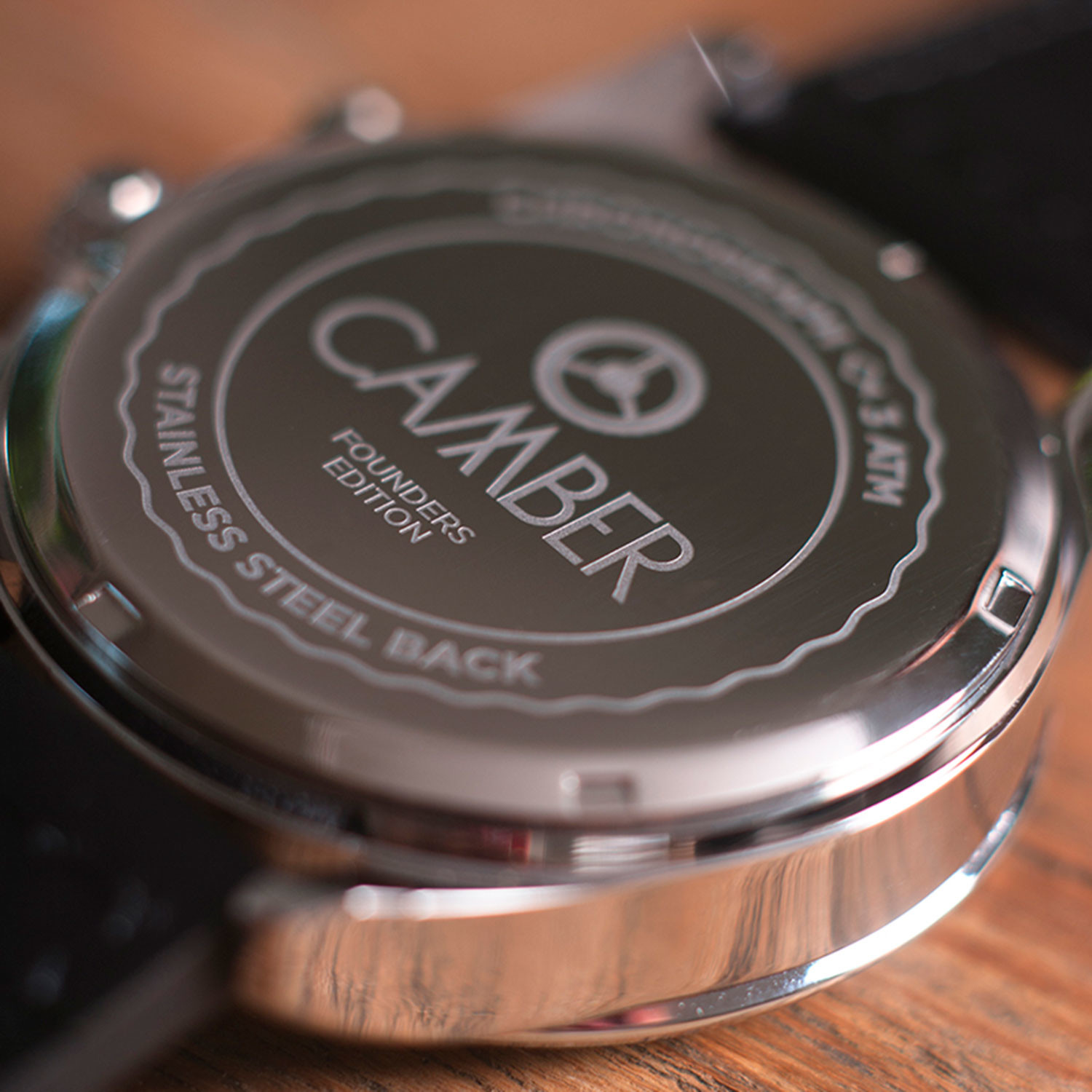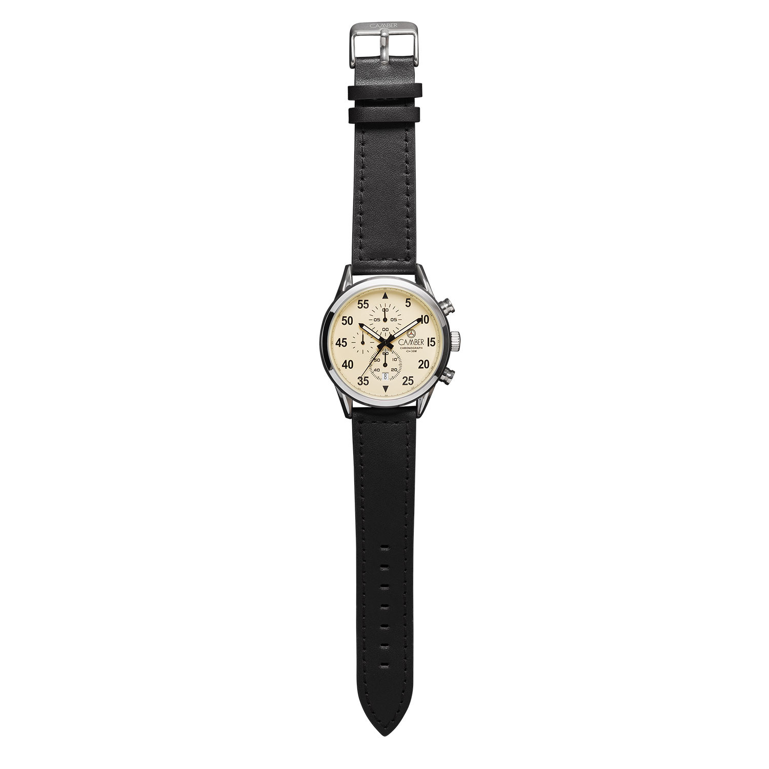 In hill climbing every tenth of a second counts; therefore Camber decided to create a timepiece with a special chronograph movement which is able to measure time down to one tenth of a second. The dial of the Camber Quartz Chronograph is inspired by the early mechanical stop watches who where used at motor sporting events. To celebrate the creation of their first model, all watch set include two additional straps.