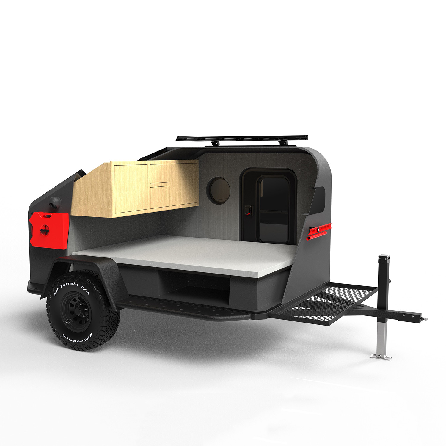 But the real marvel is that this baby goes ANYwhere. Campworks preps the NS-1 to follow your off-roader by outfitting it with a Timbren 3500HD axle-less suspension and BF Goodrich T/A KO2 all-season tire. The dry weight is just 1,750 pounds, so even loaded up with car camping gear, the NS-1 can be towed by a wide range of vehicles.