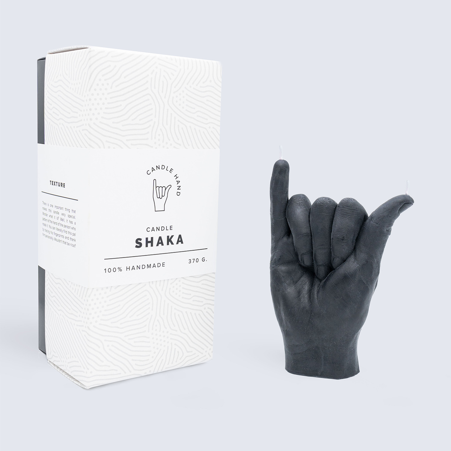 Made with nothing but colored dye and paraffin wax, this handcrafted Shaka Candle is perfectly sized and intricately detailed to look just like the real thing— complete with realistic fine lines and textures that replicate human skin. Cheeky but effective, each one is a shocking, unusual, and hilarious piece of decor that adds a surprising twist to your decor.