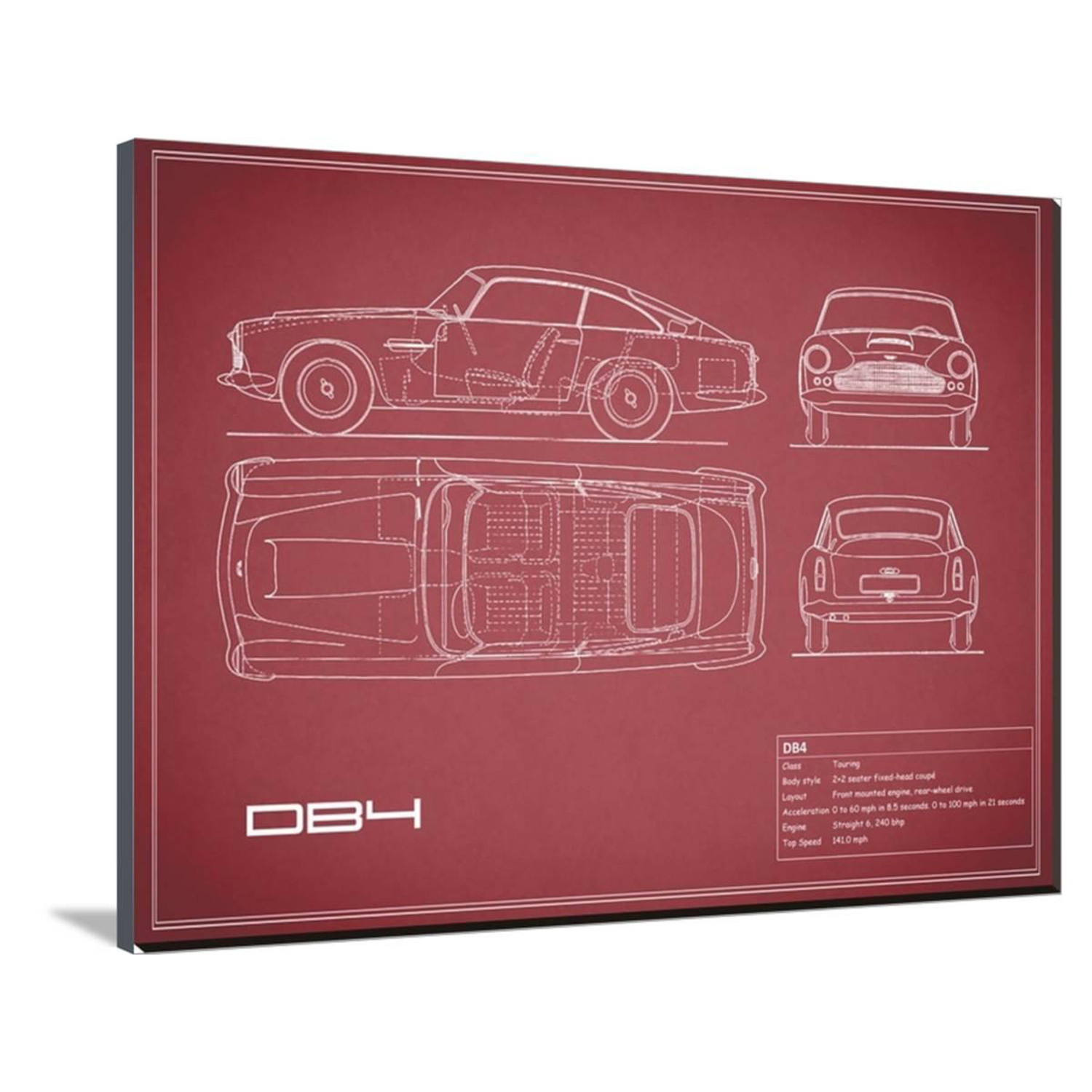Show off your love of cars, of science, of history, and of art, with this mind-boggling collection of artistically-rendered patent and blueprint diagrams for real cars. See the inner workings of the Aston Martin DB4, or the exact silhouette of the Corvette C3, displayed on high-grade canvas with a dash of vintage. It's a serious step up from photos or posters.