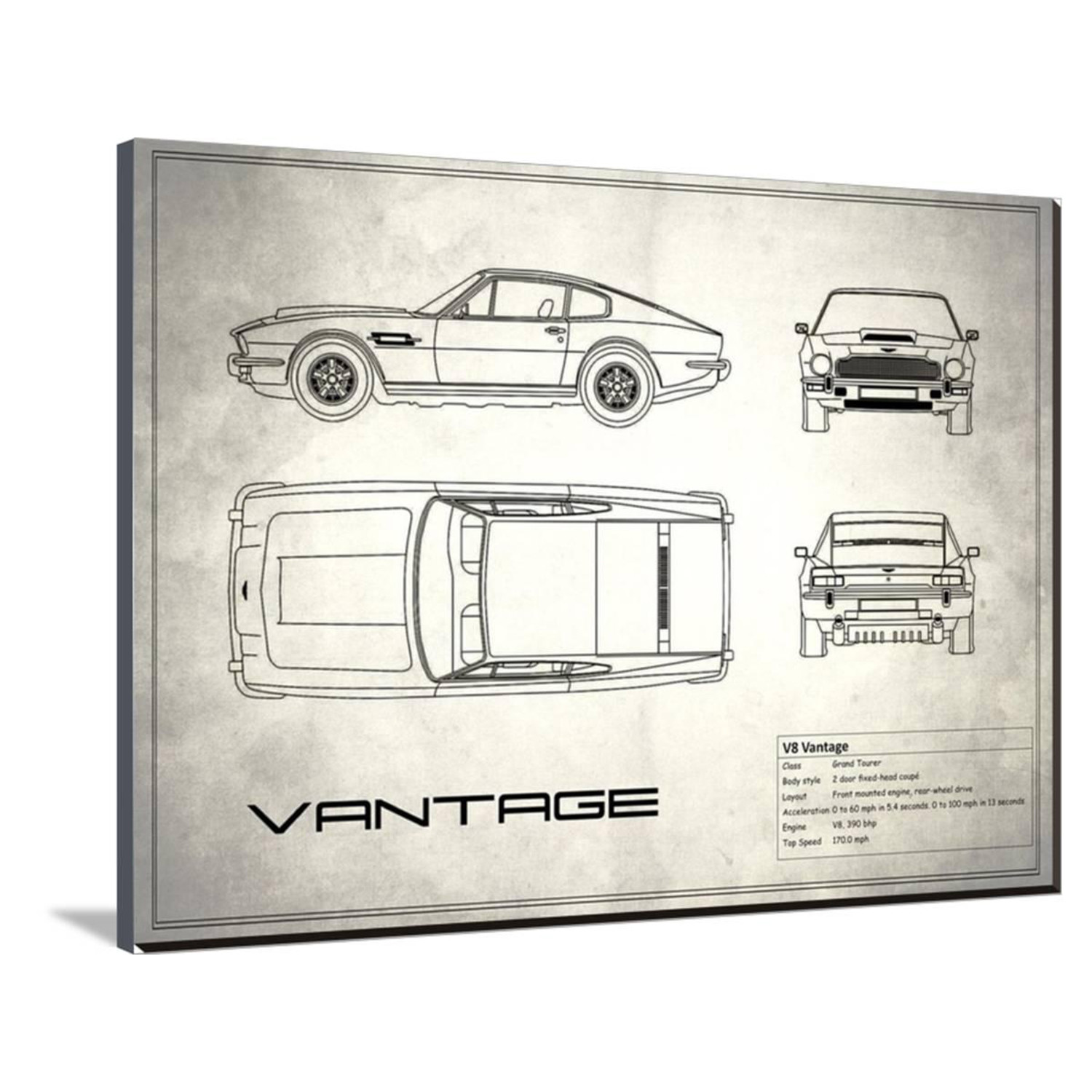 Show off your love of cars, of science, of history, and of art, with this mind-boggling collection of artistically-rendered patent and blueprint diagrams for real cars. See the inner workings of the Aston Martin DB4, or the exact silhouette of the Corvette C3, displayed on high-grade canvas with a dash of vintage. It's a serious step up from photos or posters.