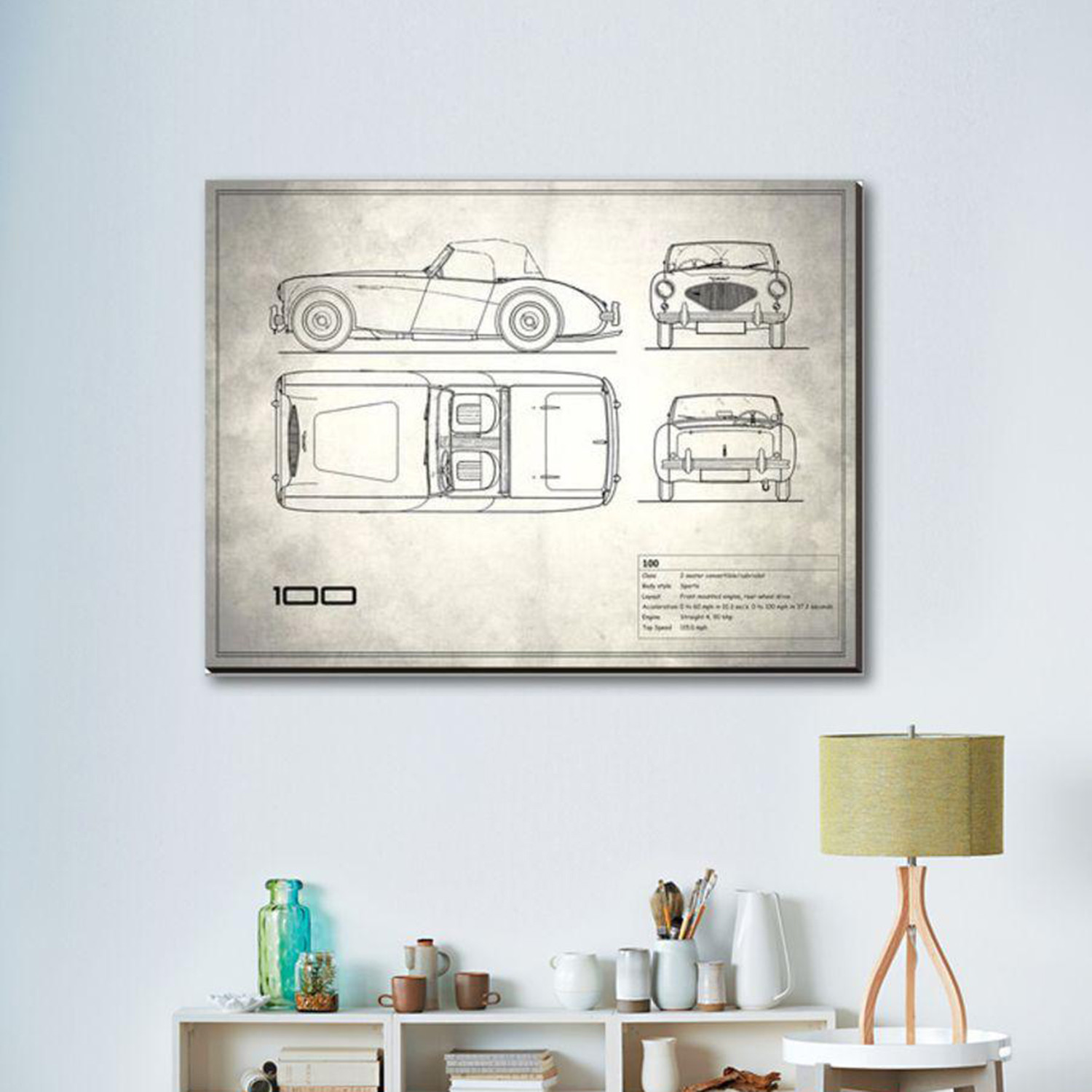 Show off your love of cars, of science, of history, and of art, with this mind-boggling collection of artistically-rendered patent and blueprint diagrams for real cars. See the inner workings of the Aston Martin DB4, or the exact silhouette of the Corvette C3, displayed on high-grade canvas with a dash of vintage. It's a serious step up from photos or posters.