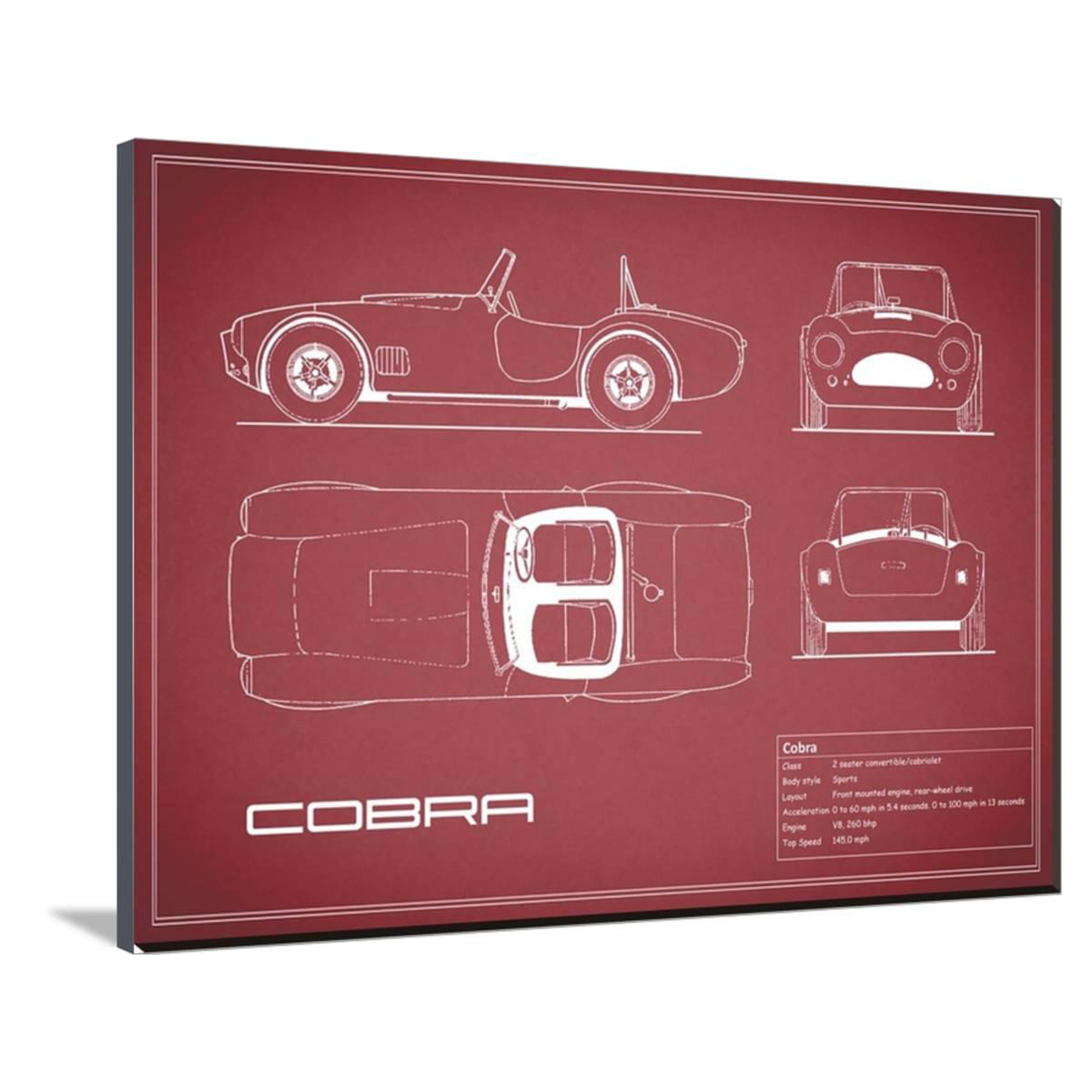 Show off your love of cars, of science, of history, and of art, with this mind-boggling collection of artistically-rendered patent and blueprint diagrams for real cars. See the inner workings of the Aston Martin DB4, or the exact silhouette of the Corvette C3, displayed on high-grade canvas with a dash of vintage. It's a serious step up from photos or posters.