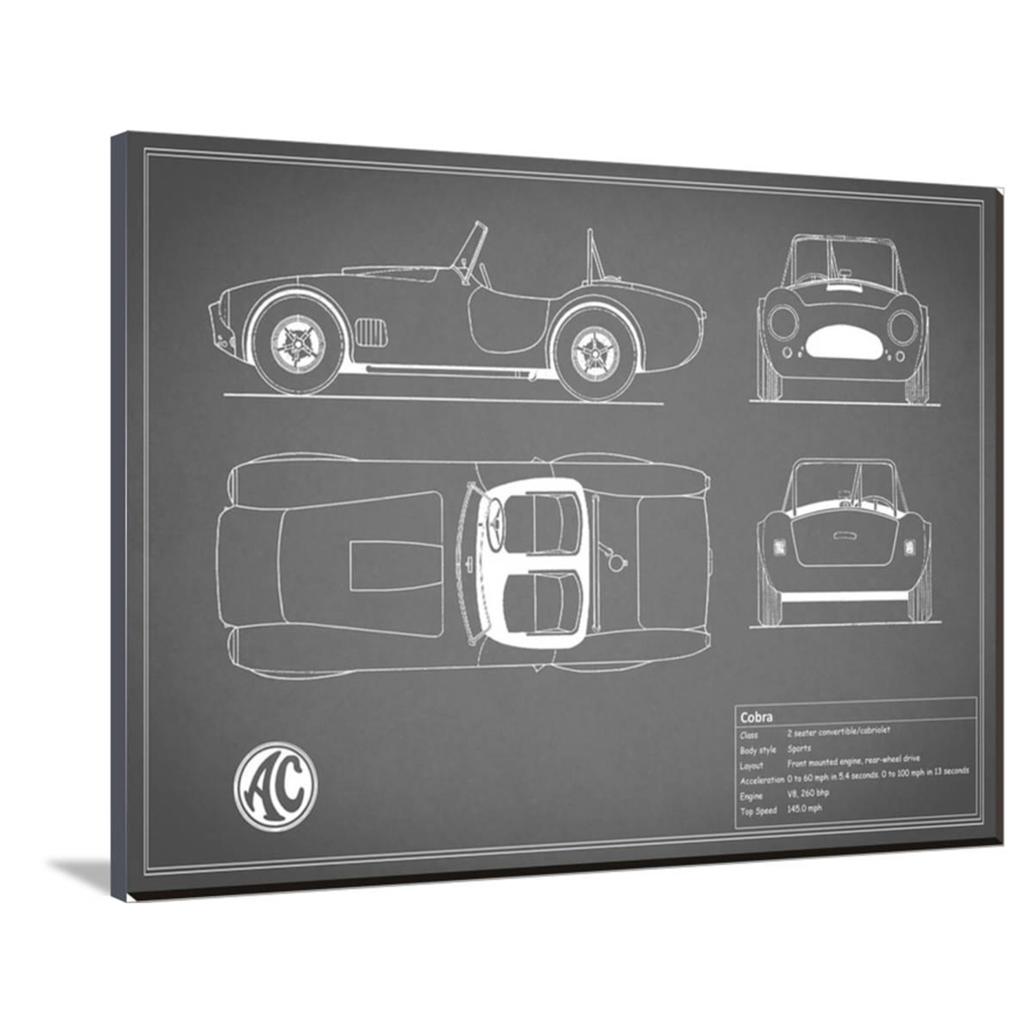 Show off your love of cars, of science, of history, and of art, with this mind-boggling collection of artistically-rendered patent and blueprint diagrams for real cars. See the inner workings of the Aston Martin DB4, or the exact silhouette of the Corvette C3, displayed on high-grade canvas with a dash of vintage. It's a serious step up from photos or posters.