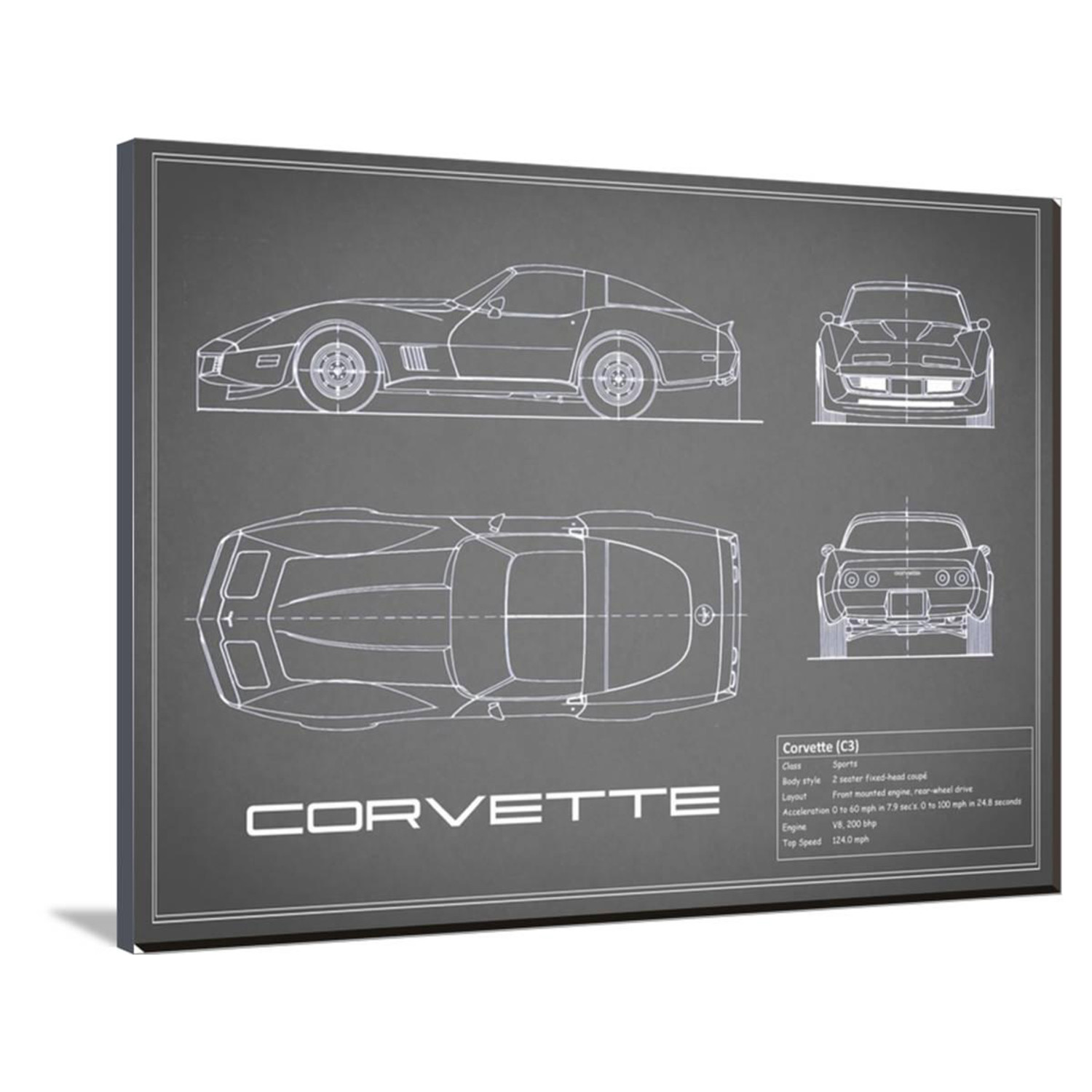 Show off your love of cars, of science, of history, and of art, with this mind-boggling collection of artistically-rendered patent and blueprint diagrams for real cars. See the inner workings of the Aston Martin DB4, or the exact silhouette of the Corvette C3, displayed on high-grade canvas with a dash of vintage. It's a serious step up from photos or posters.