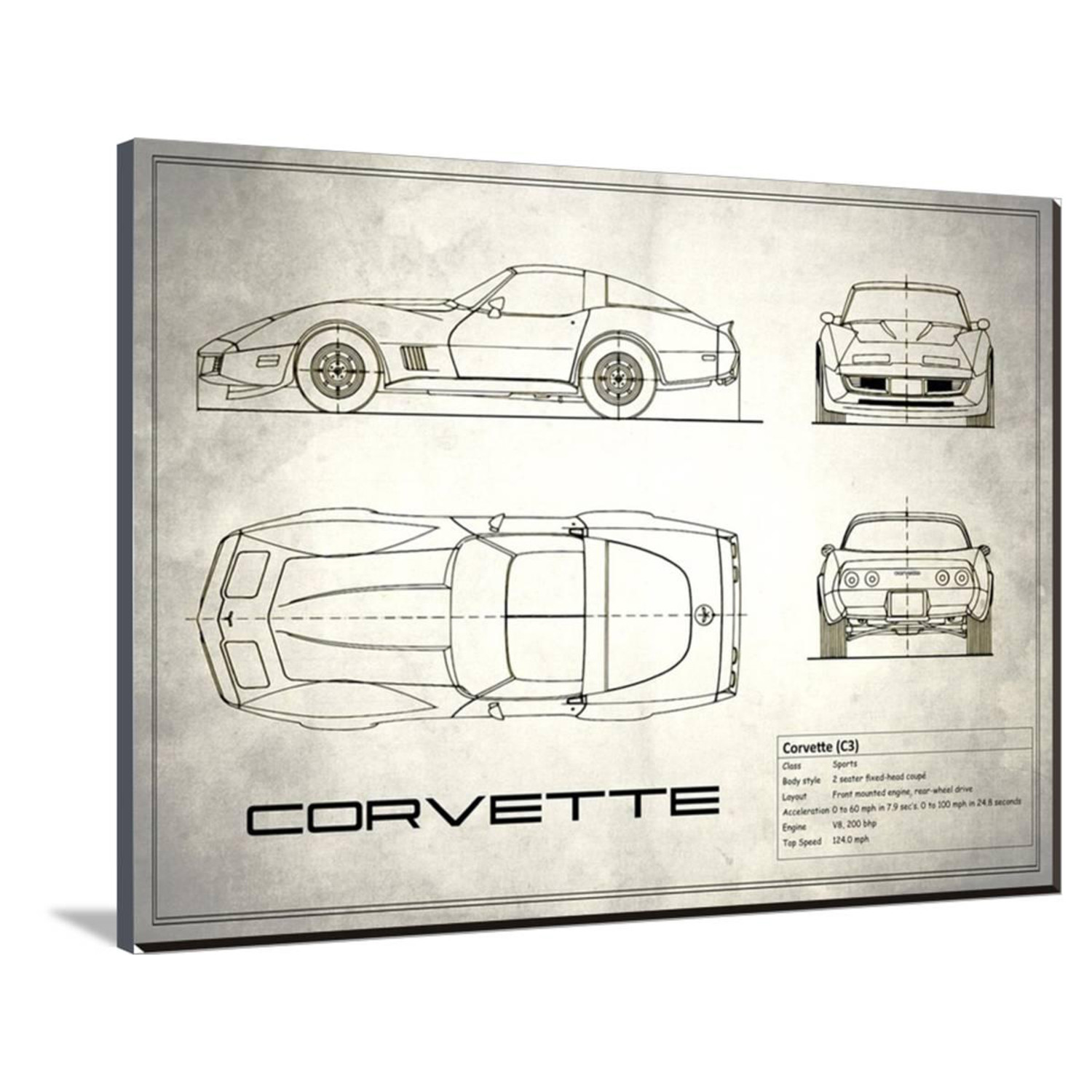Show off your love of cars, of science, of history, and of art, with this mind-boggling collection of artistically-rendered patent and blueprint diagrams for real cars. See the inner workings of the Aston Martin DB4, or the exact silhouette of the Corvette C3, displayed on high-grade canvas with a dash of vintage. It's a serious step up from photos or posters.