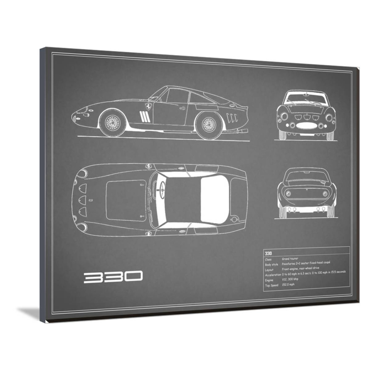 Show off your love of cars, of science, of history, and of art, with this mind-boggling collection of artistically-rendered patent and blueprint diagrams for real cars. See the inner workings of the Aston Martin DB4, or the exact silhouette of the Corvette C3, displayed on high-grade canvas with a dash of vintage. It's a serious step up from photos or posters.