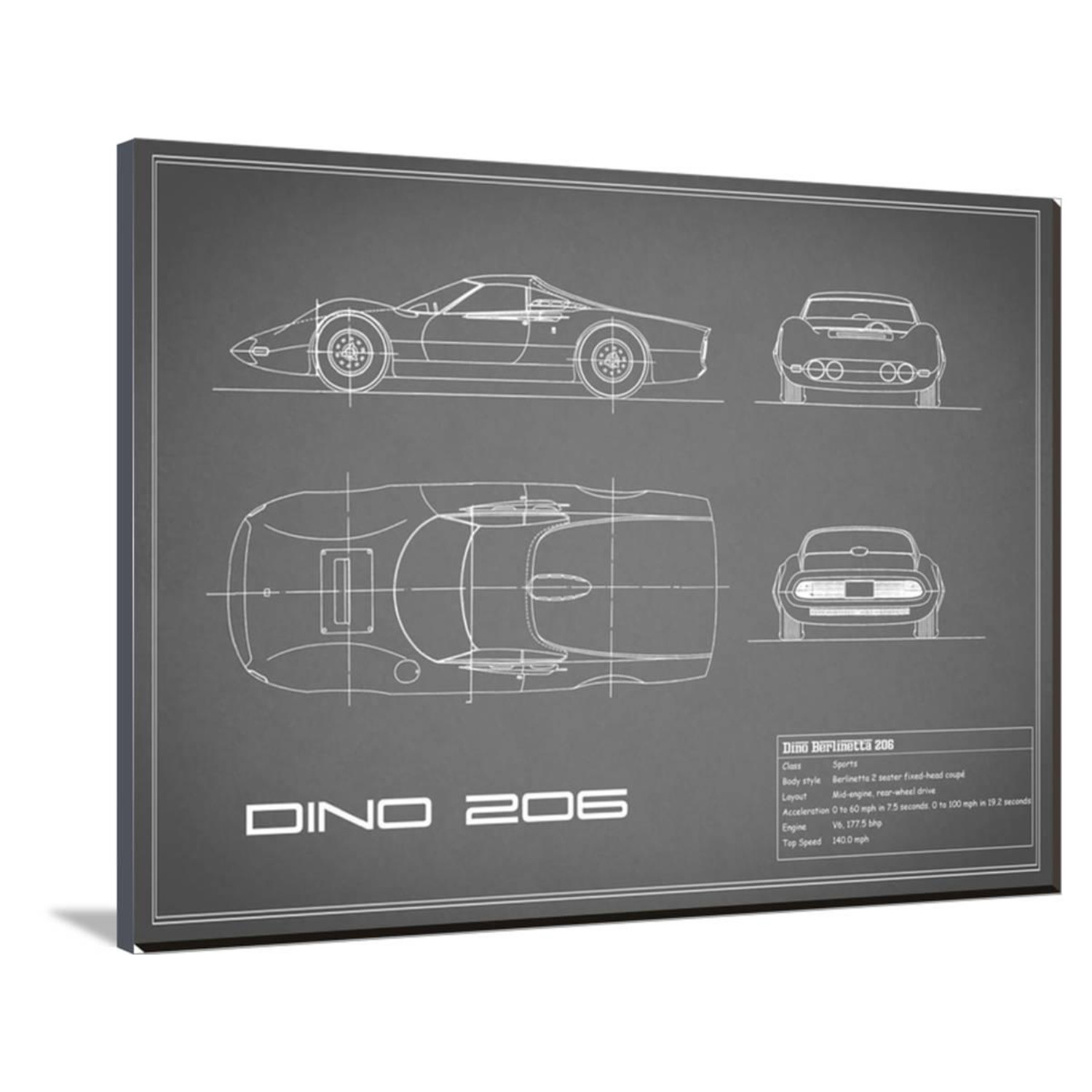 Show off your love of cars, of science, of history, and of art, with this mind-boggling collection of artistically-rendered patent and blueprint diagrams for real cars. See the inner workings of the Aston Martin DB4, or the exact silhouette of the Corvette C3, displayed on high-grade canvas with a dash of vintage. It's a serious step up from photos or posters.