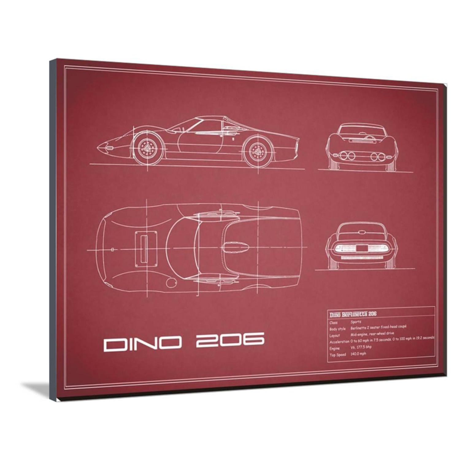 Show off your love of cars, of science, of history, and of art, with this mind-boggling collection of artistically-rendered patent and blueprint diagrams for real cars. See the inner workings of the Aston Martin DB4, or the exact silhouette of the Corvette C3, displayed on high-grade canvas with a dash of vintage. It's a serious step up from photos or posters.