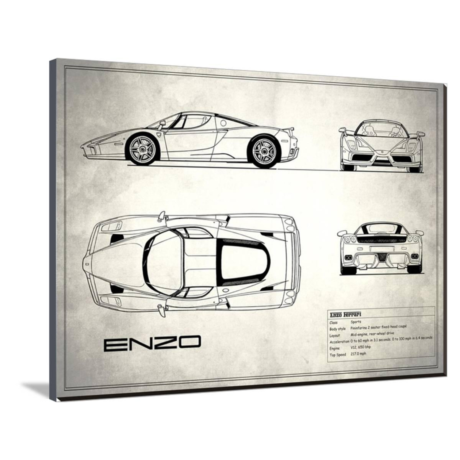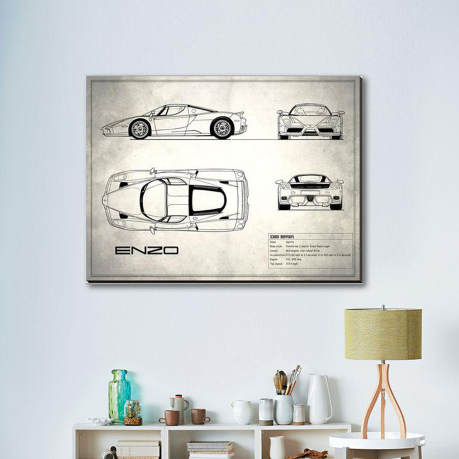 Show off your love of cars, of science, of history, and of art, with this mind-boggling collection of artistically-rendered patent and blueprint diagrams for real cars. See the inner workings of the Aston Martin DB4, or the exact silhouette of the Corvette C3, displayed on high-grade canvas with a dash of vintage. It's a serious step up from photos or posters.