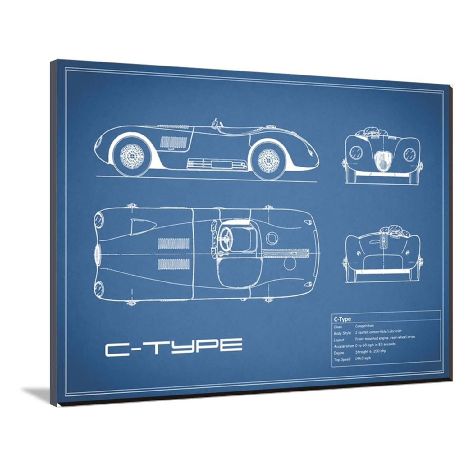 Show off your love of cars, of science, of history, and of art, with this mind-boggling collection of artistically-rendered patent and blueprint diagrams for real cars. See the inner workings of the Aston Martin DB4, or the exact silhouette of the Corvette C3, displayed on high-grade canvas with a dash of vintage. It's a serious step up from photos or posters.