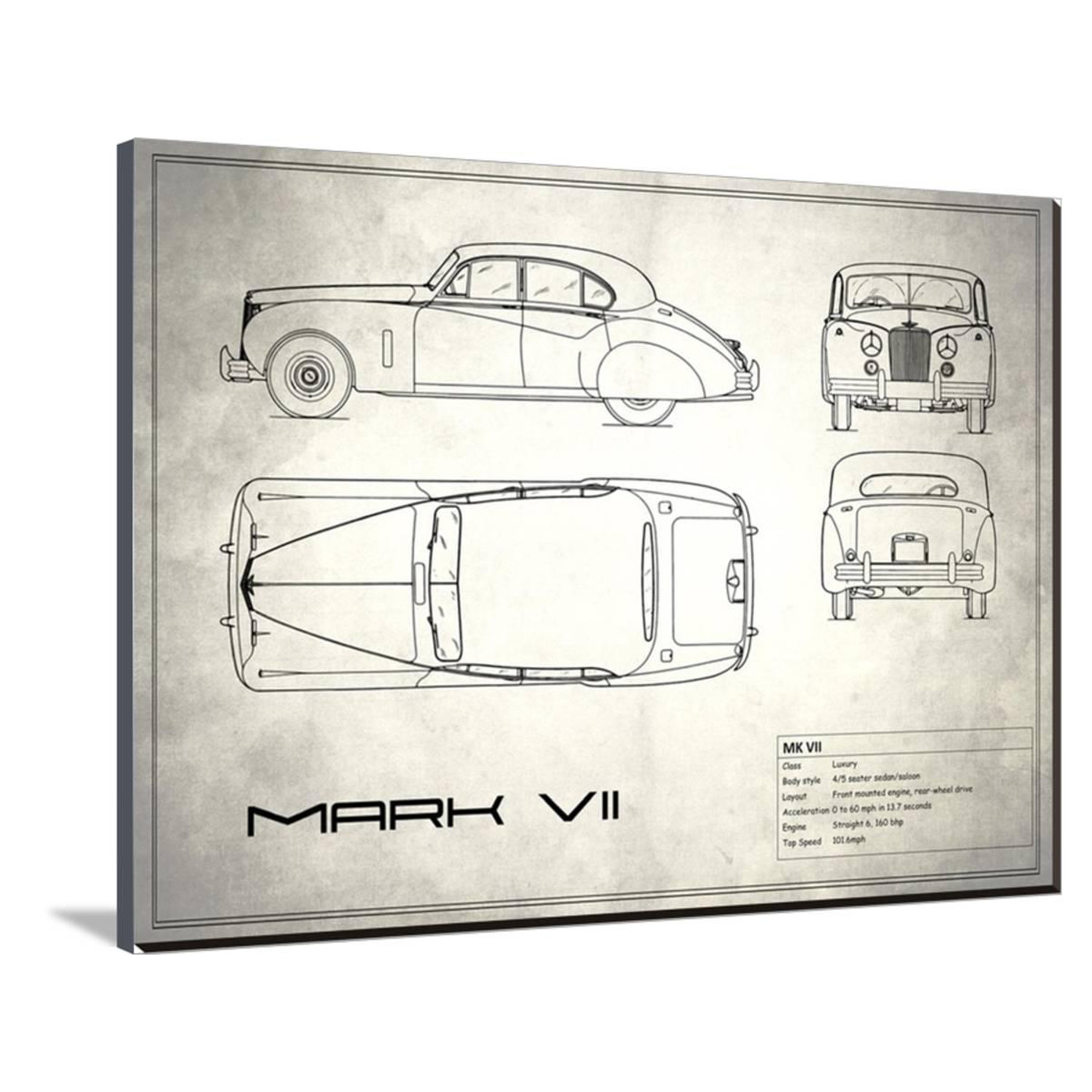 Show off your love of cars, of science, of history, and of art, with this mind-boggling collection of artistically-rendered patent and blueprint diagrams for real cars. See the inner workings of the Aston Martin DB4, or the exact silhouette of the Corvette C3, displayed on high-grade canvas with a dash of vintage. It's a serious step up from photos or posters.