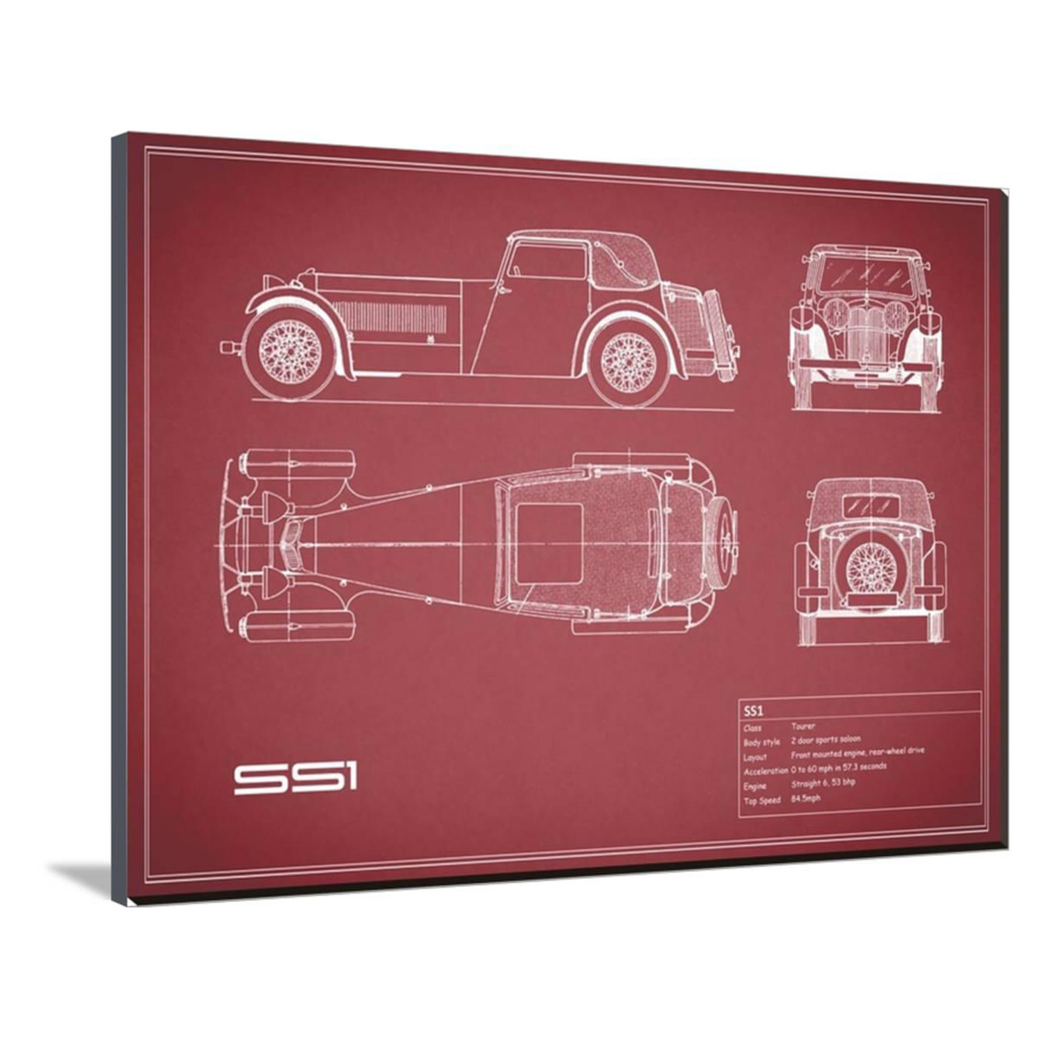 Show off your love of cars, of science, of history, and of art, with this mind-boggling collection of artistically-rendered patent and blueprint diagrams for real cars. See the inner workings of the Aston Martin DB4, or the exact silhouette of the Corvette C3, displayed on high-grade canvas with a dash of vintage. It's a serious step up from photos or posters.