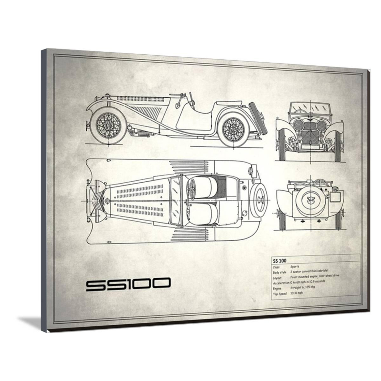 Show off your love of cars, of science, of history, and of art, with this mind-boggling collection of artistically-rendered patent and blueprint diagrams for real cars. See the inner workings of the Aston Martin DB4, or the exact silhouette of the Corvette C3, displayed on high-grade canvas with a dash of vintage. It's a serious step up from photos or posters.