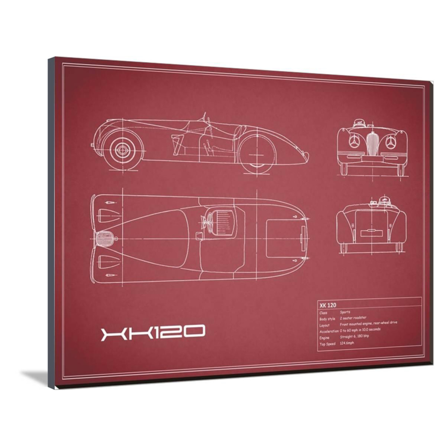Show off your love of cars, of science, of history, and of art, with this mind-boggling collection of artistically-rendered patent and blueprint diagrams for real cars. See the inner workings of the Aston Martin DB4, or the exact silhouette of the Corvette C3, displayed on high-grade canvas with a dash of vintage. It's a serious step up from photos or posters.