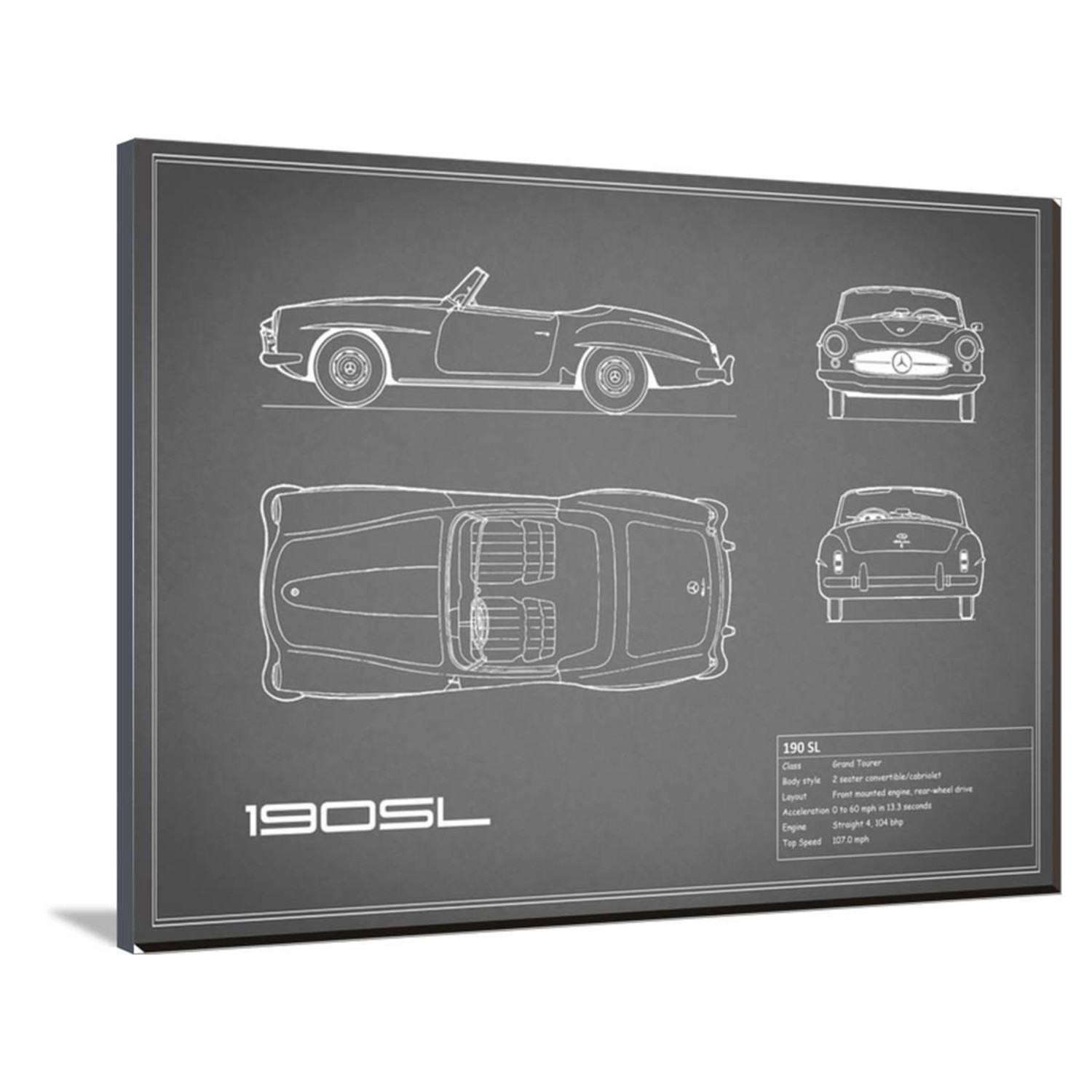 Show off your love of cars, of science, of history, and of art, with this mind-boggling collection of artistically-rendered patent and blueprint diagrams for real cars. See the inner workings of the Aston Martin DB4, or the exact silhouette of the Corvette C3, displayed on high-grade canvas with a dash of vintage. It's a serious step up from photos or posters.