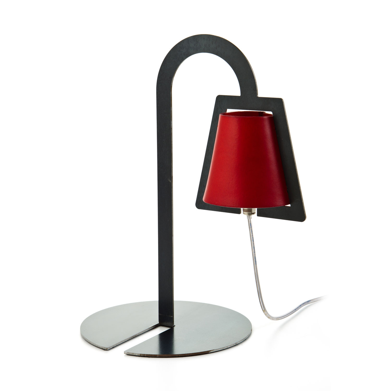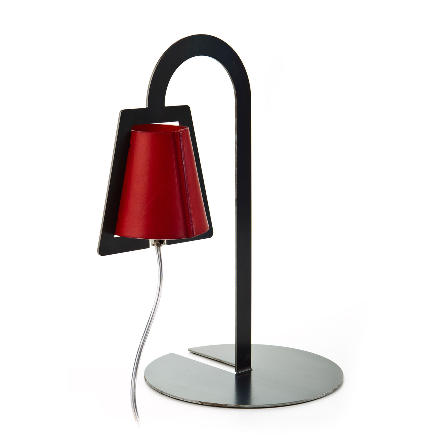The Abelia provides a curious juxtaposition of materials—the vegetable tanned leather shade plays against the durable, metal frame. This is a lovely and conversation-inciting piece for your table top.