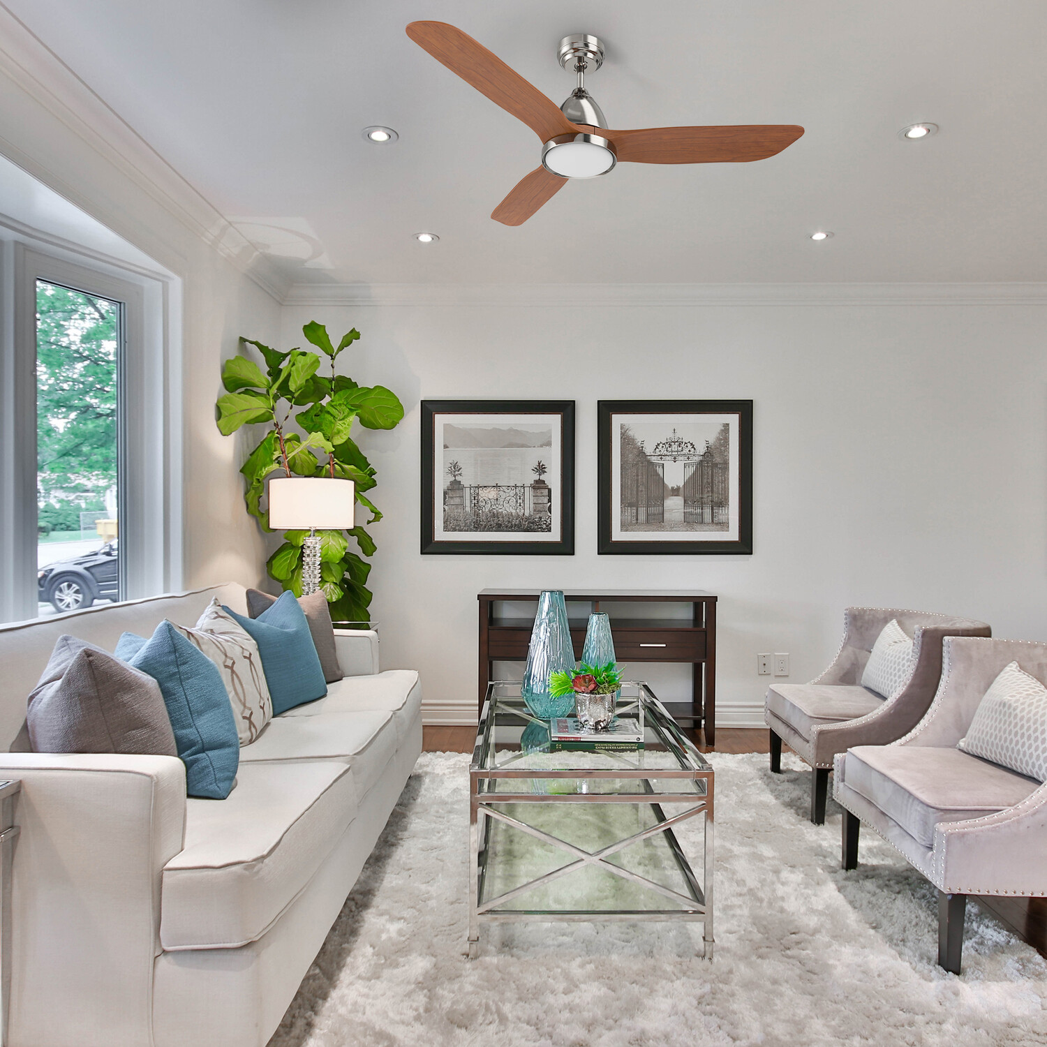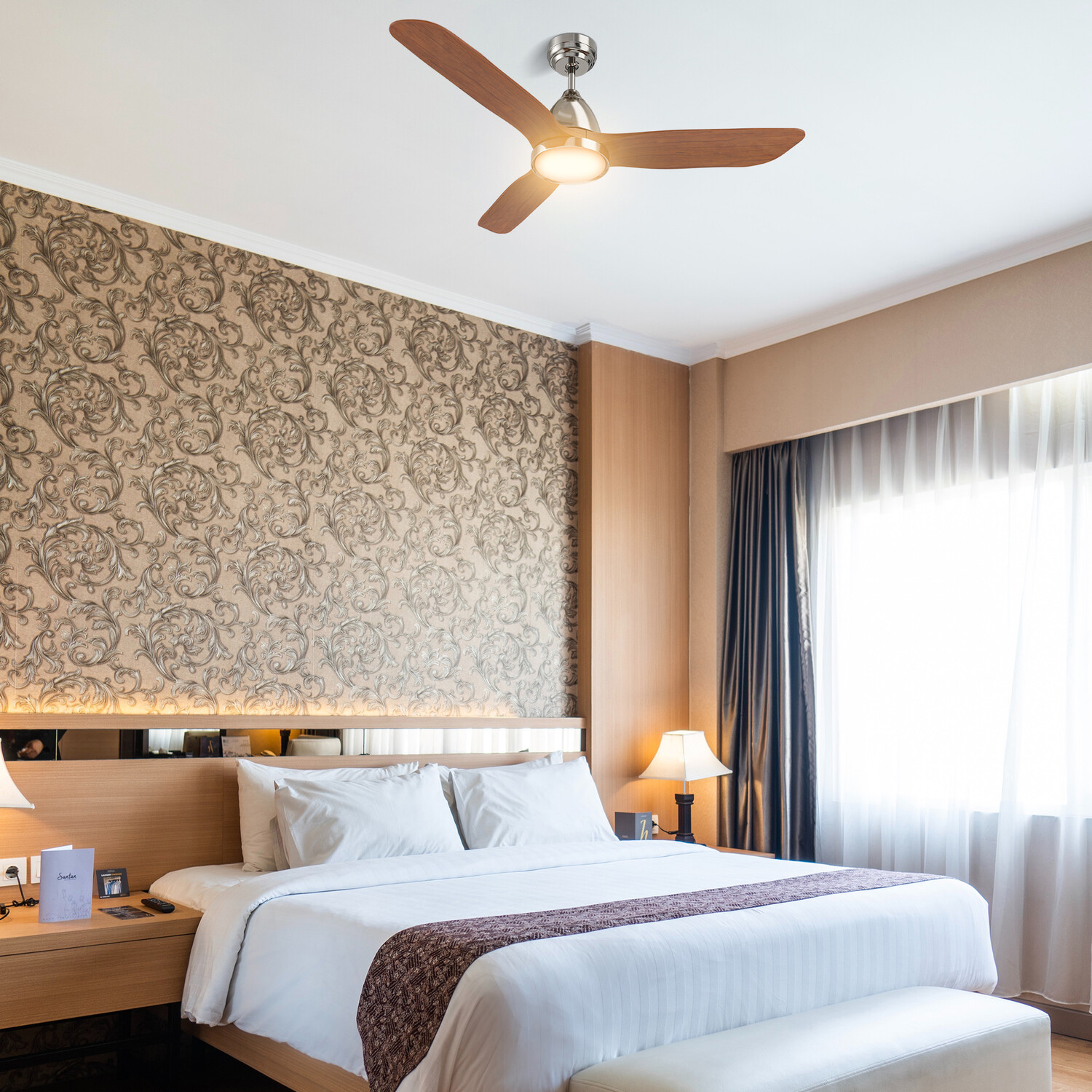 Garrick 52" 3-Blade Smart Ceiling Fan + Led Light Kit // Silver + Red Wood