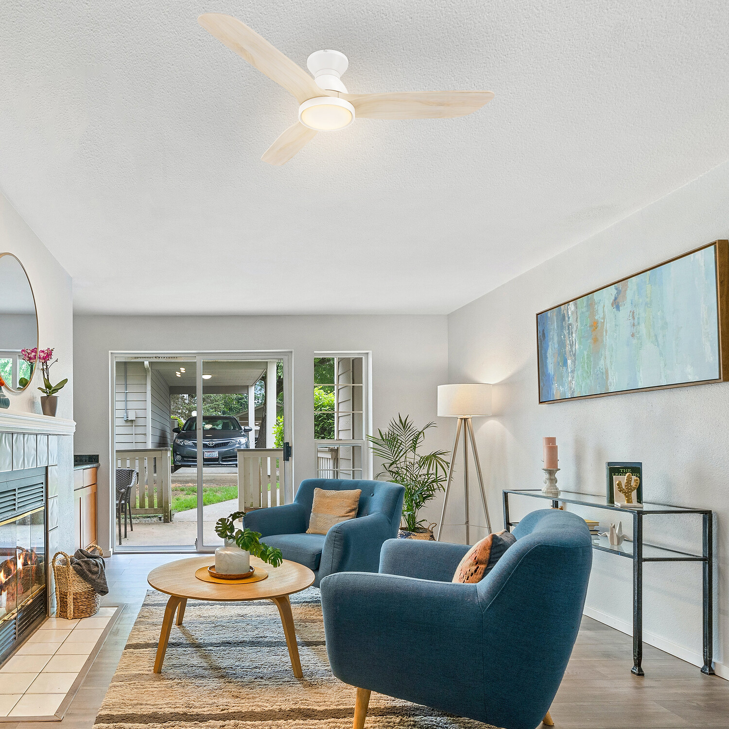 JAARON 52" 3-Blade Smart Ceiling Fan + LED Light Kit // White + White Oak