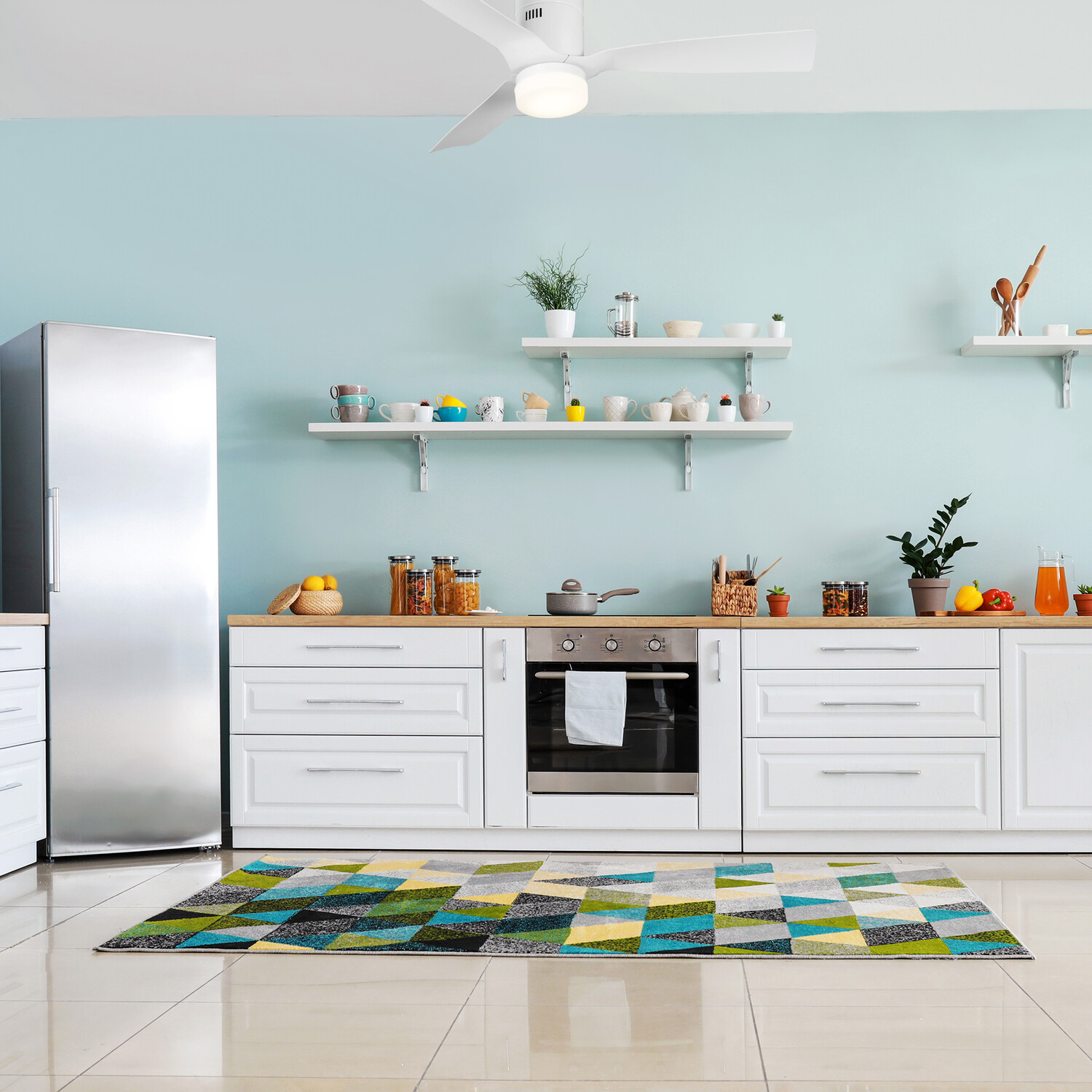 Spezia is a smart ceiling fan that keeps your space cool, bright, and looking good. It features an incredibly efficient and completely silent, 10-speed reversible motor that allows you to change the direction of your fan from downdraft mode during the summer to updraft mode during the winter. Equipped with an LED light kit featuring warm light and cool light, this fan offers lower energy consumption and a long life span. Control it all with the included remote control or via WiFi apps and voice control like Amazon Alexa and Google Home Assistant. The simplicity of the design makes it a modern masterpiece perfect for your large living spaces.
