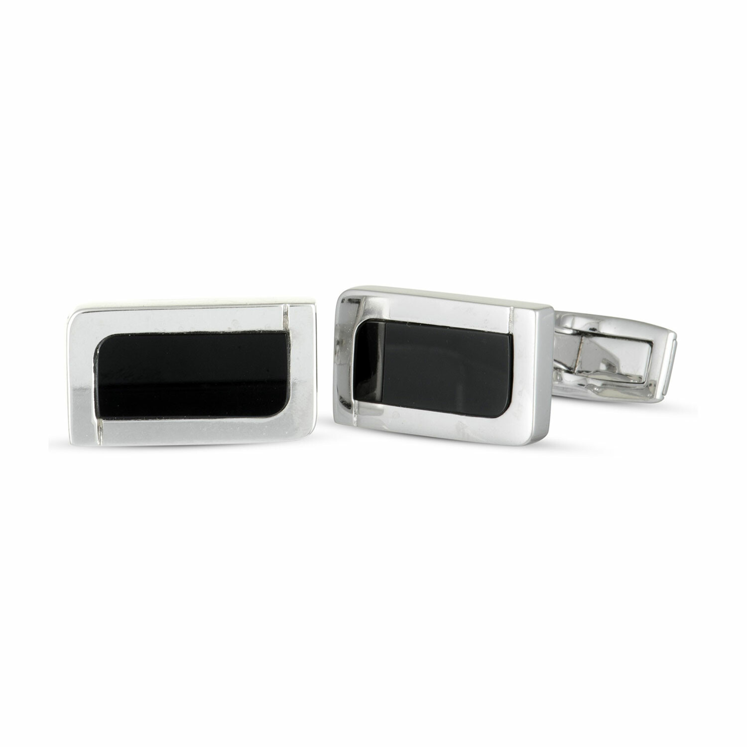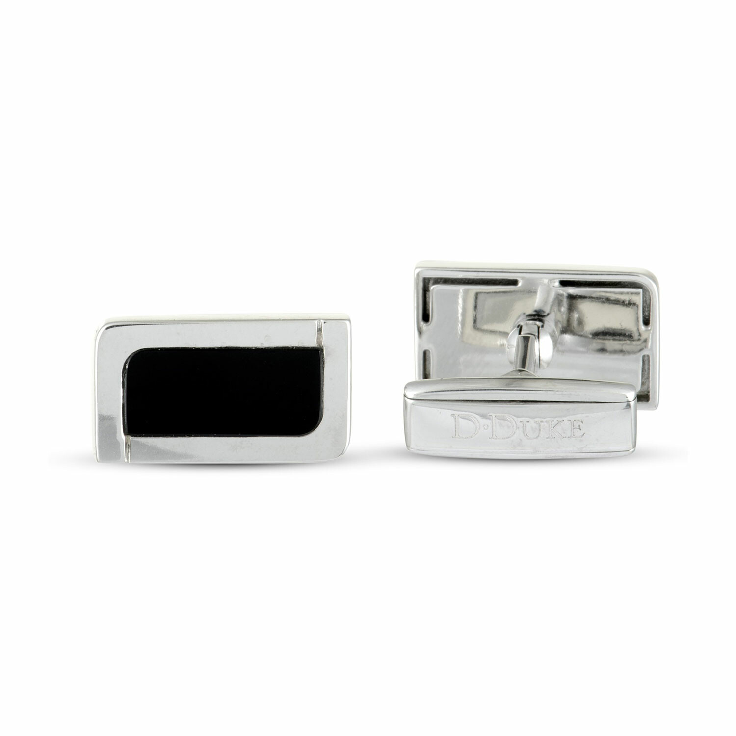 Luca Carati // D-Duke Sterling Silver + Onyx Rectangle Cufflinks // New