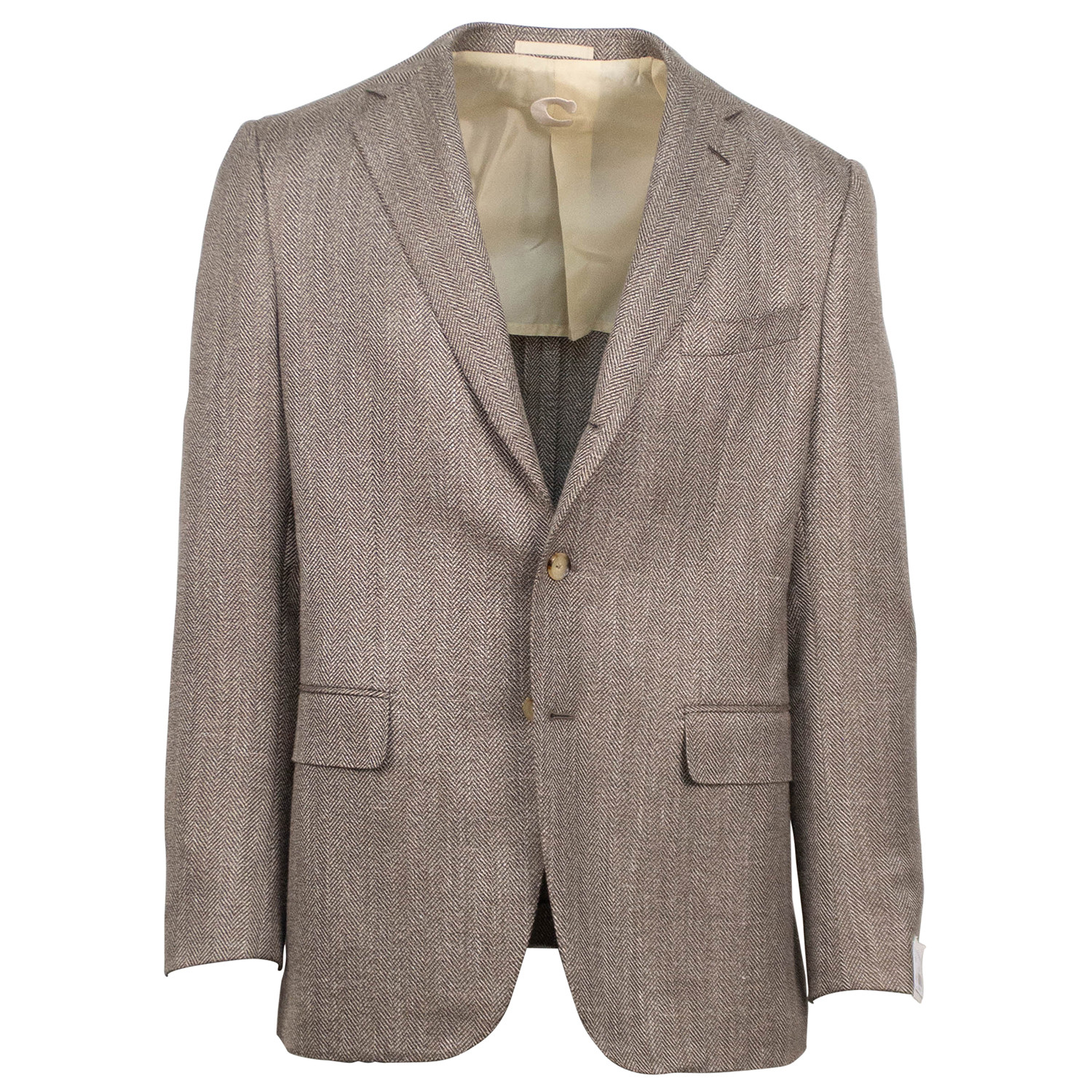 Herringbone Wool Blend 3 Roll 2 Button Sport Coat // Brown