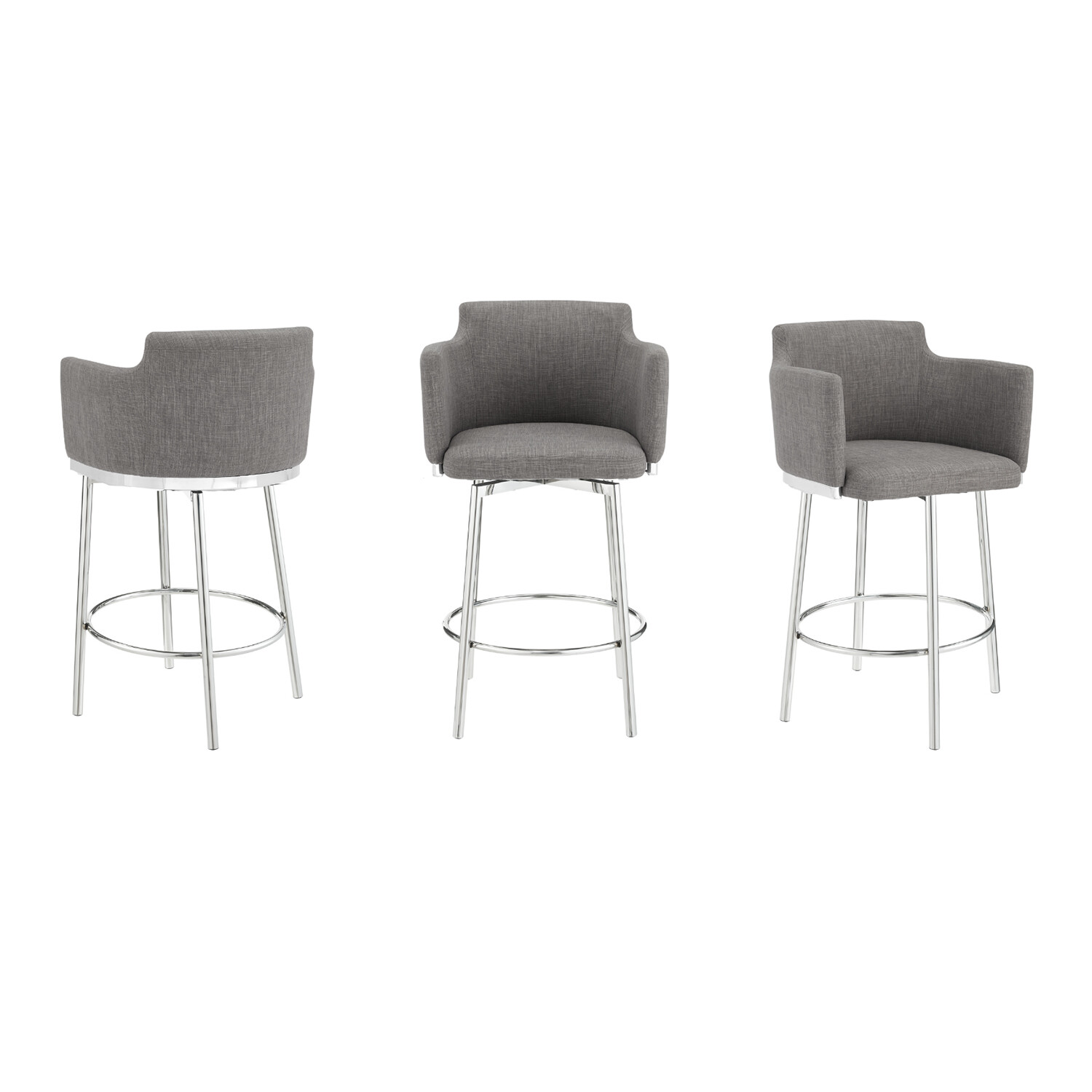 The Aria Counter 180 Swivel Stool bar stool in gray linen fabric by Casabianca Home provides both versatile style and comfort with a ultra-modern that can easily be integrated into your current kitchen decor in your home.