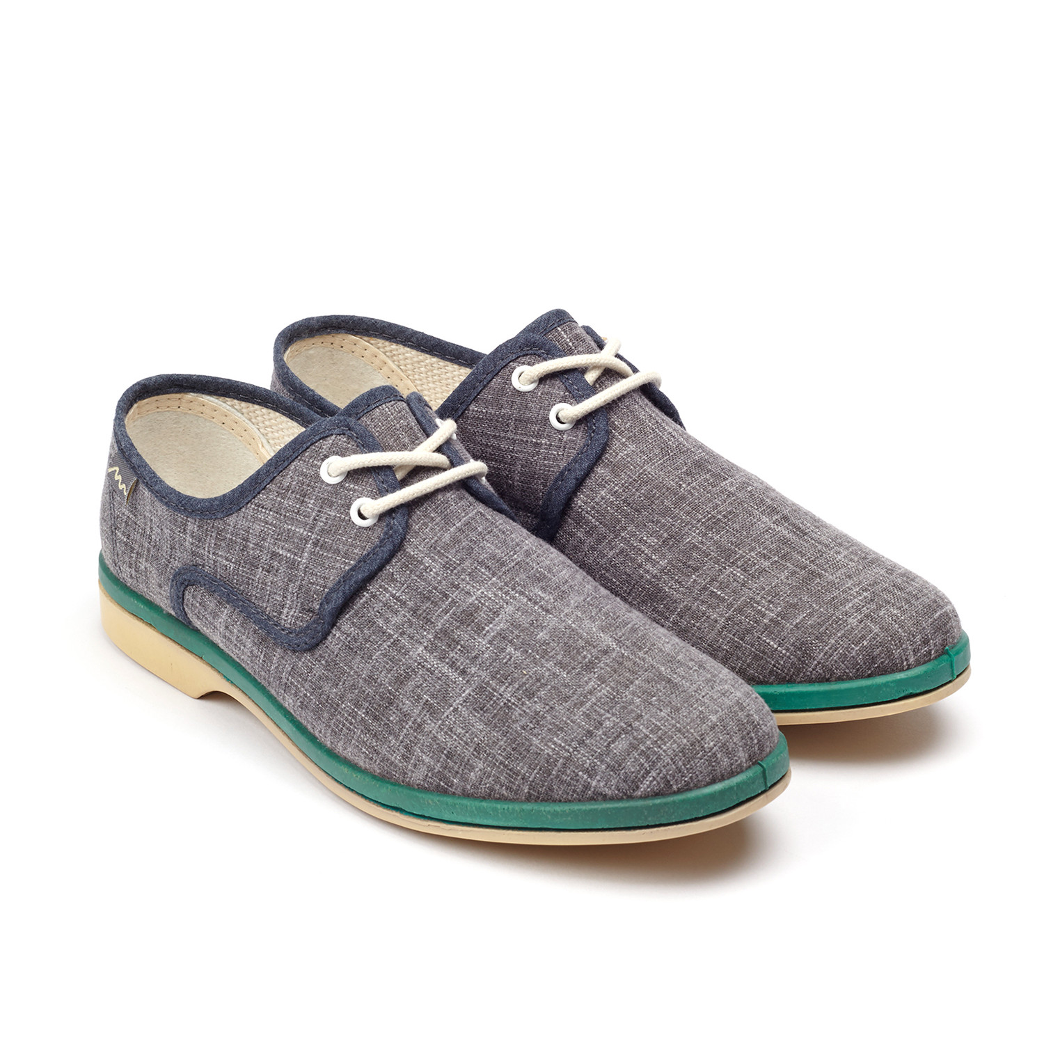 The Calisto Lona Derby stands out for its bright, two-tone rubber sole. This custom sole — set beneath a cotton canvas upper — is the result of a handcrafted vulcanisation process that is exclusive to Maians.
