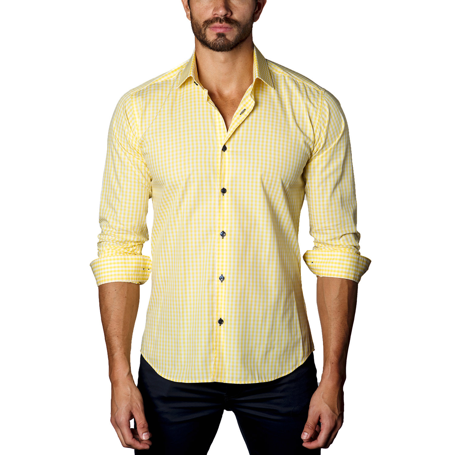 Achieving the perfect urbane allure is easy in this Button-Up Shirt from Jared Lang. This semi-fitted essential features all the signature contrast stitching and inner trimming you've come to expect from the brand, so you'll never come up short when it comes to style.