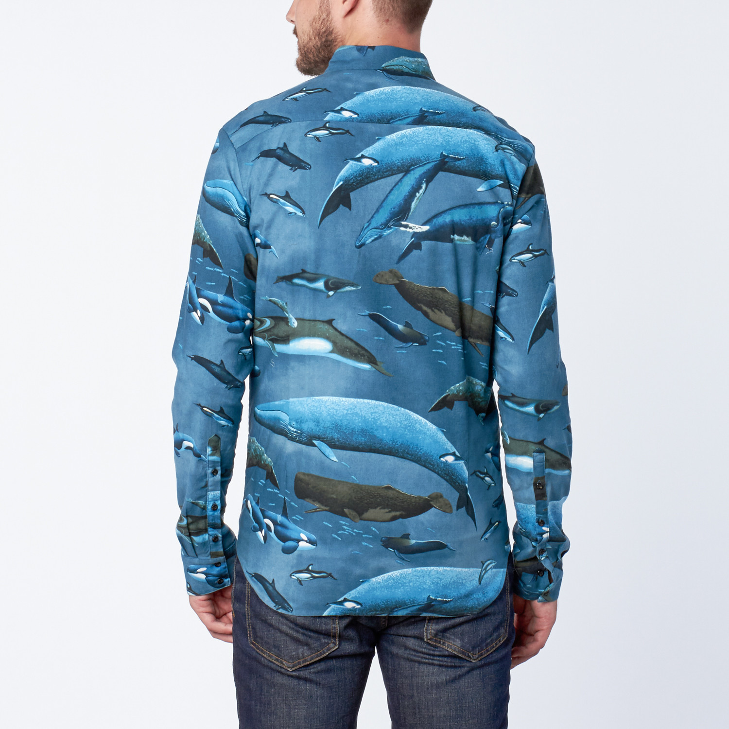 Made with an unmistakable whale print, the Emerson Longsleeve Woven makes an oceanic statement. Classically tailored for a trim, pared-down shape, this shirt lets the print do the heavy lifting.