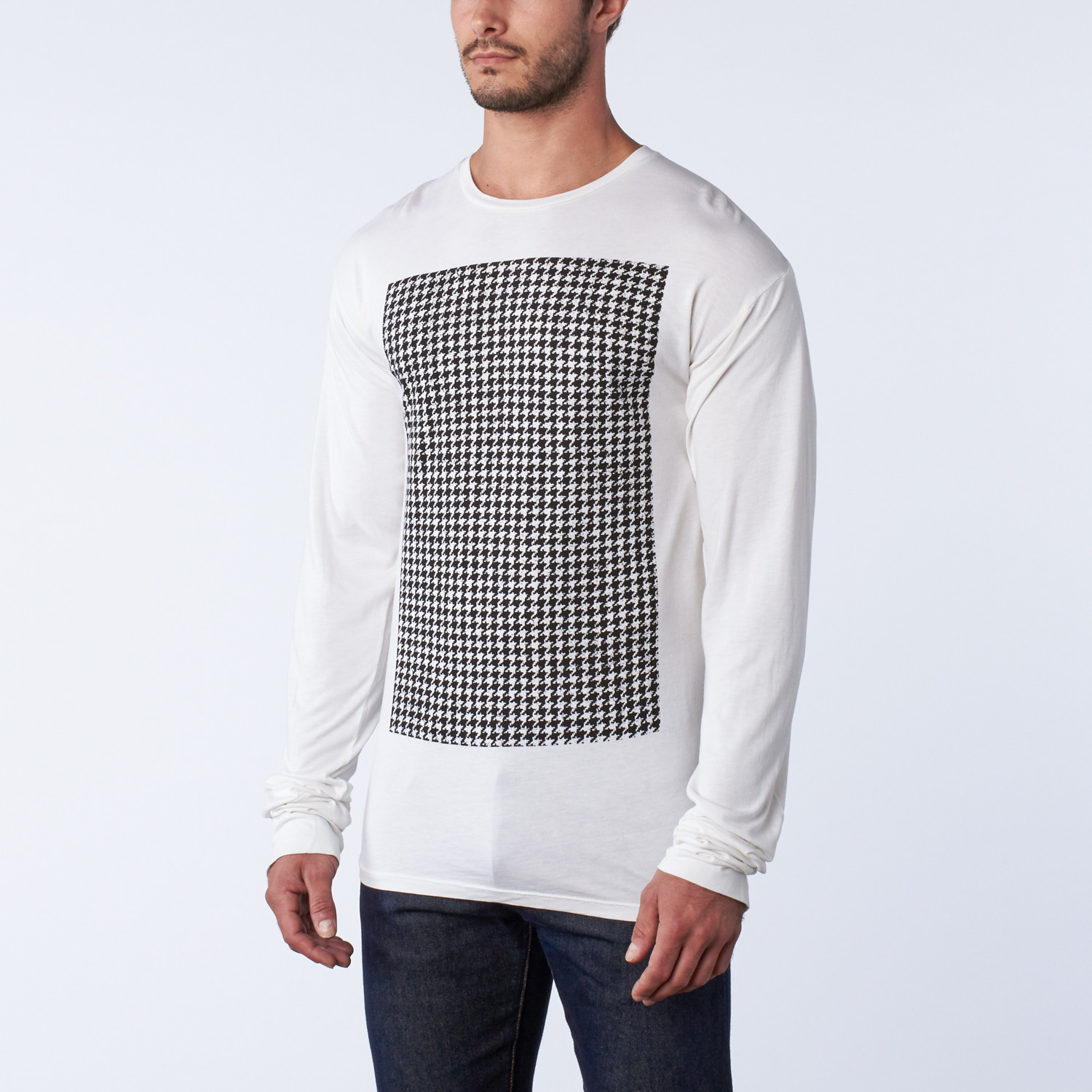 The Kings Lonsleeve Knit takes the torso graphic and turns it on its head. With a classic houndstooth block front and center, it's a perfect piece to pair with classic menswear.