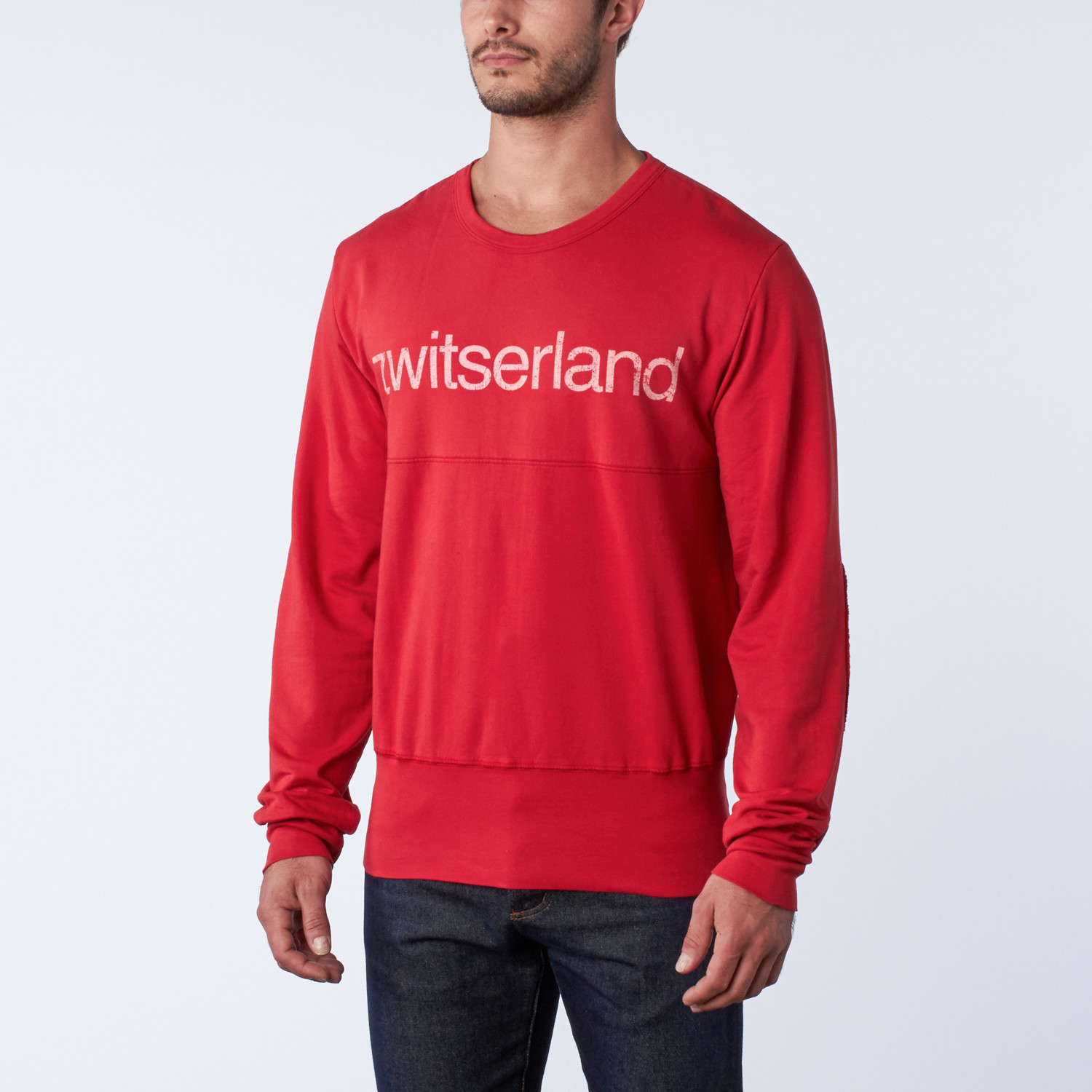 Done in a vibrant red cotton, the La Suisse Sweatshirt is most notable for its bold lettering across the torso. A horizontal seam adds another element of visual interest.