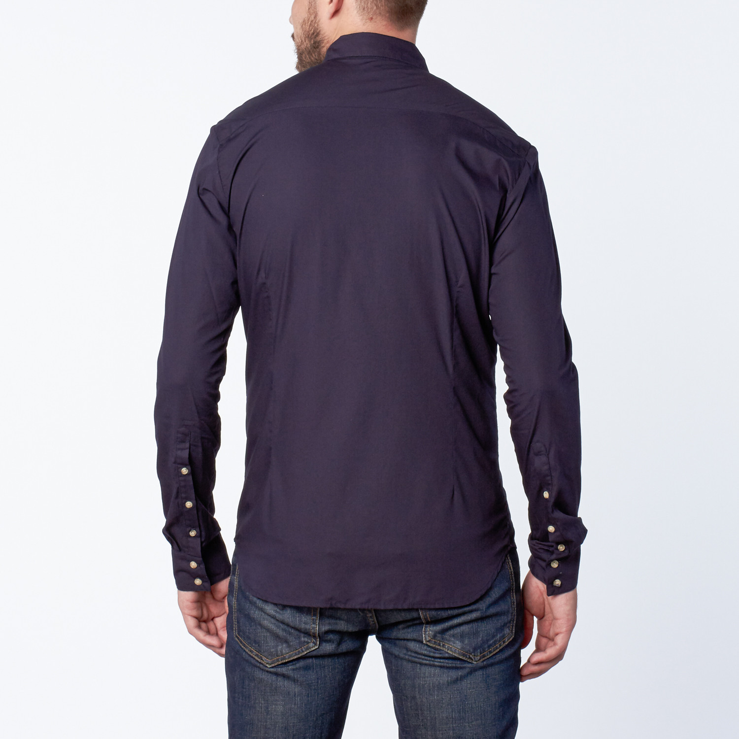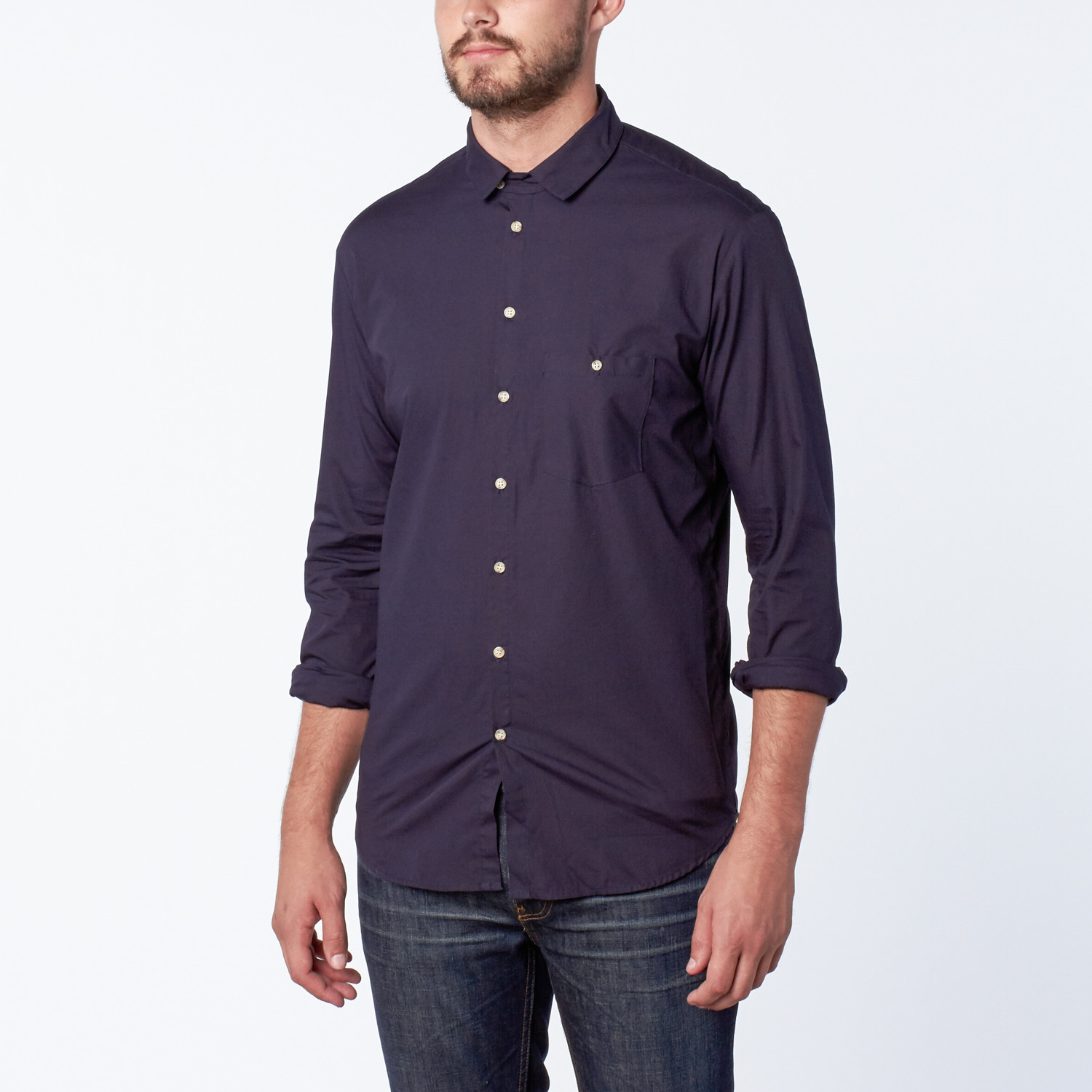 The Lombardi Longsleeve Woven keeps it simple. This classic, overdyed shirt is done in a dark navy perfect for pairing with graphic sweaters.