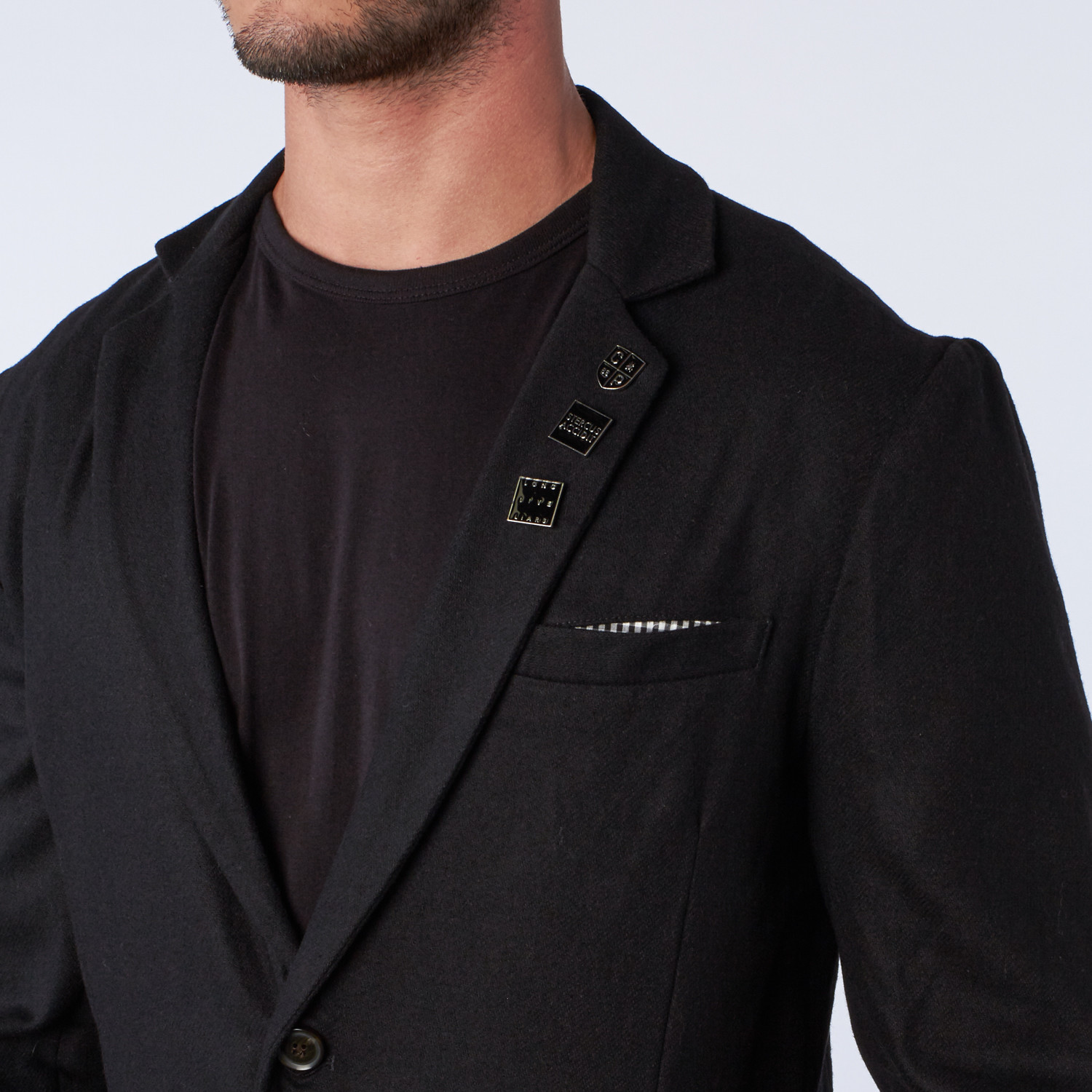 The Sonata Wool Blazer blends the collegiate with the punk. A two-button blazer with Caulfield Prep's signature button-through waist pockets, it's lined with pins at the lapel for a touch of visual interest.