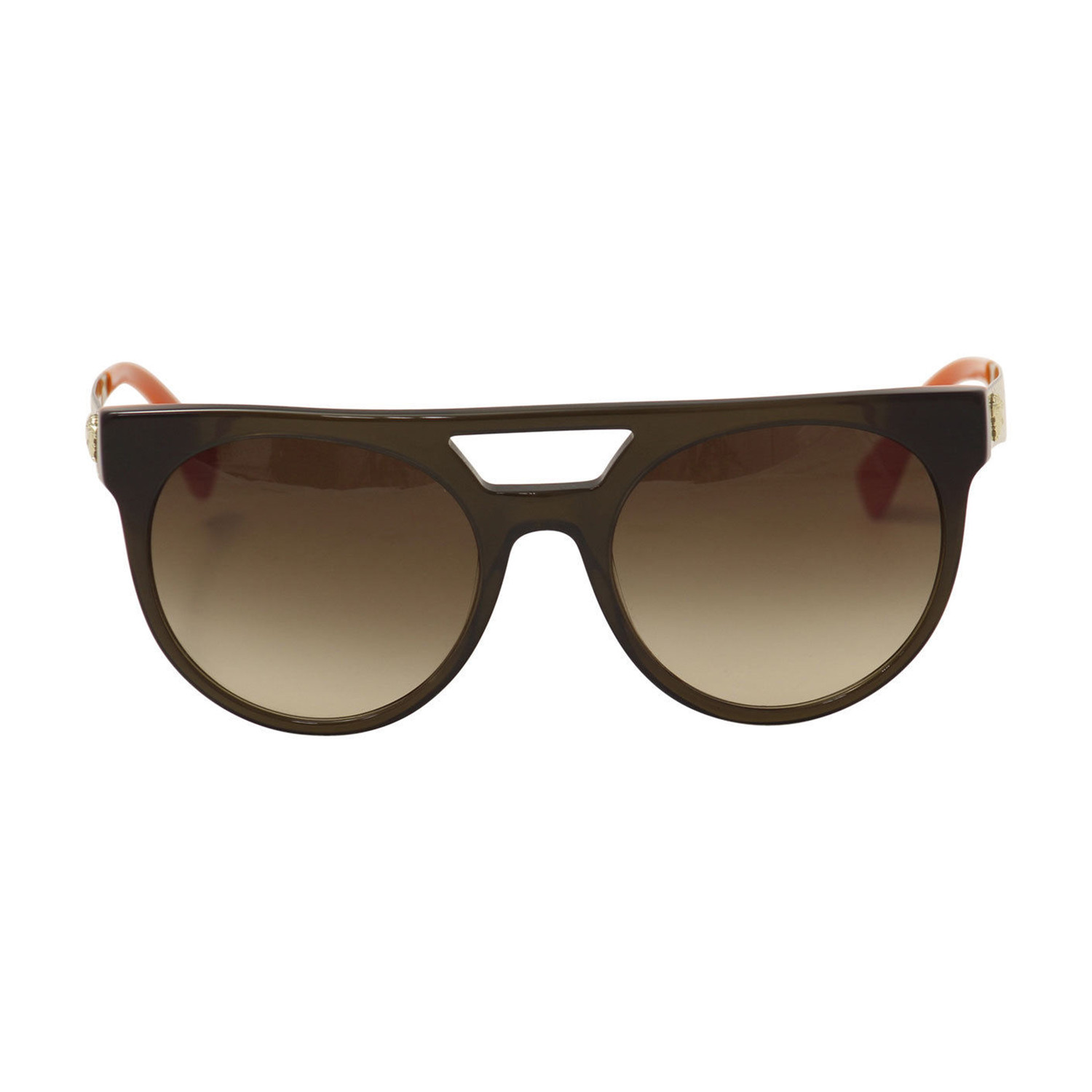 Versace // Modern Aviator Women's Sunglasses // Transparent Green Orange + Brown Gradient
