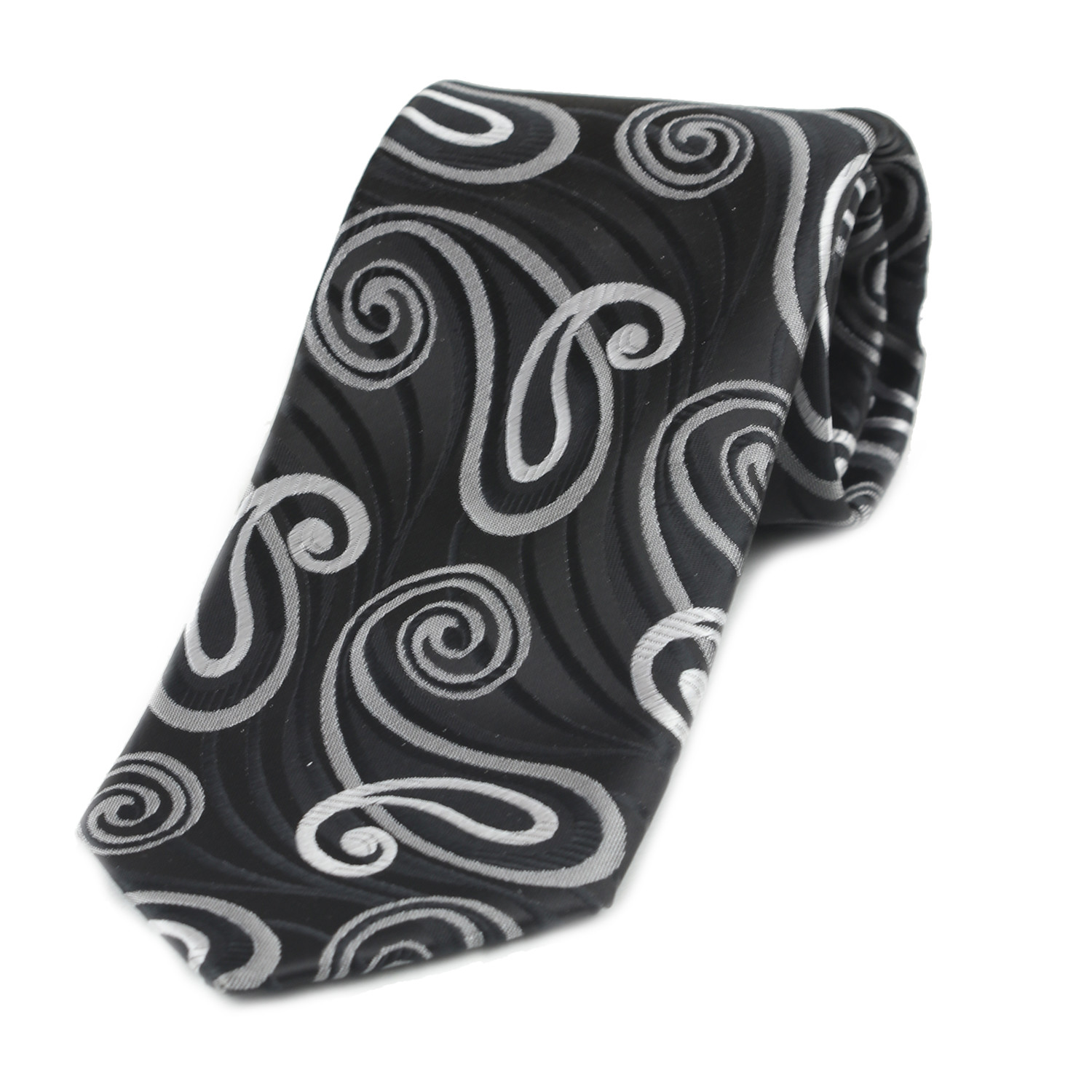 Celino // Silk Neck Tie // Dark Gray + White Paisley