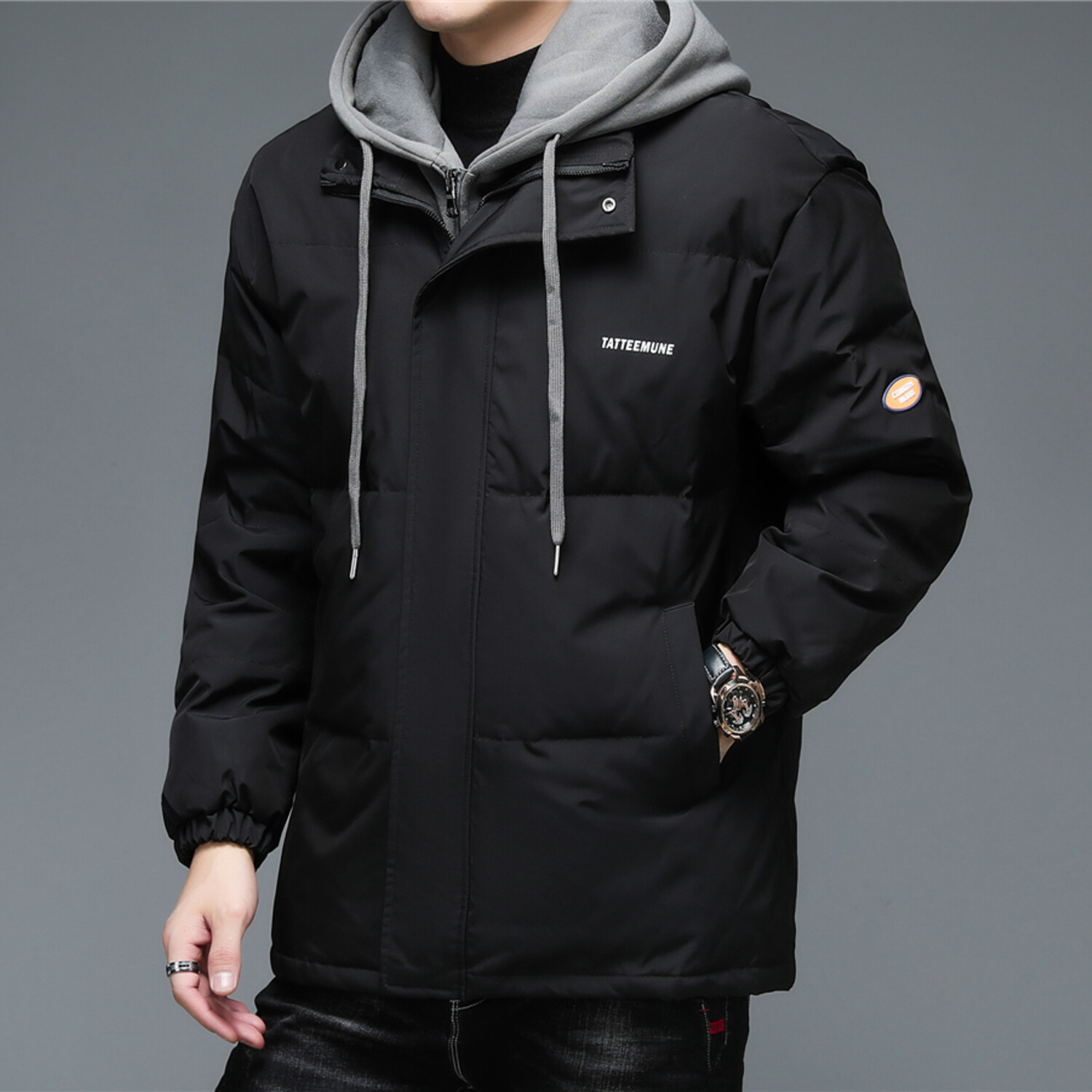 Insulated Gray Hooded Duck Down Fill Jacket // Black
